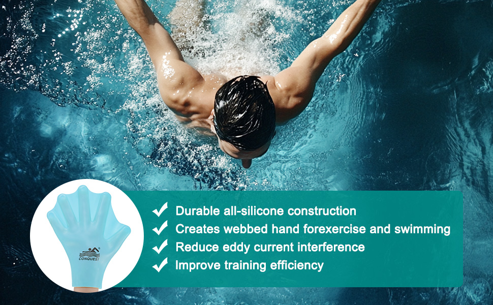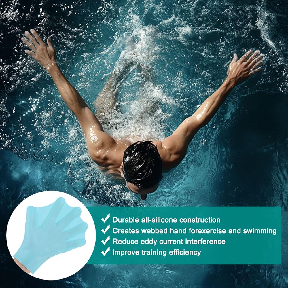 • [Durable Silicone Swim Gloves] - The swim gloves are made of silicone, which ensures the comfort, softness, and excellent elasticity of swimming gloves, and are lightweight portable, and reusable