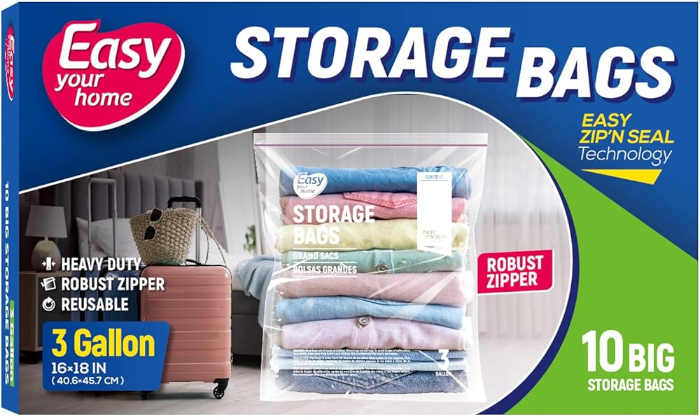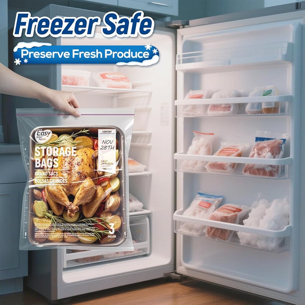 {Advanced Easy Zipn Seal Technology لإغلاق آمن} تتميز كل من أكياسنا المكونة من 10 عبوات (16 "× 18") بتقنية مبتكرة سهلة zipn ، مع سحاب قوي وقوي يضمن ختمًا آمنًا ومقاومًا للتسرب. بالإضافة إلى ذلك ، تحتوي كل حقيبة على منطقة قابلة للكتابة حيث يمكنك تسمية المحتويات والتواريخ والتفاصيل المهمة الأخرى ، مما يتيح لك تتبع العناصر الخاصة بك بسهولة.