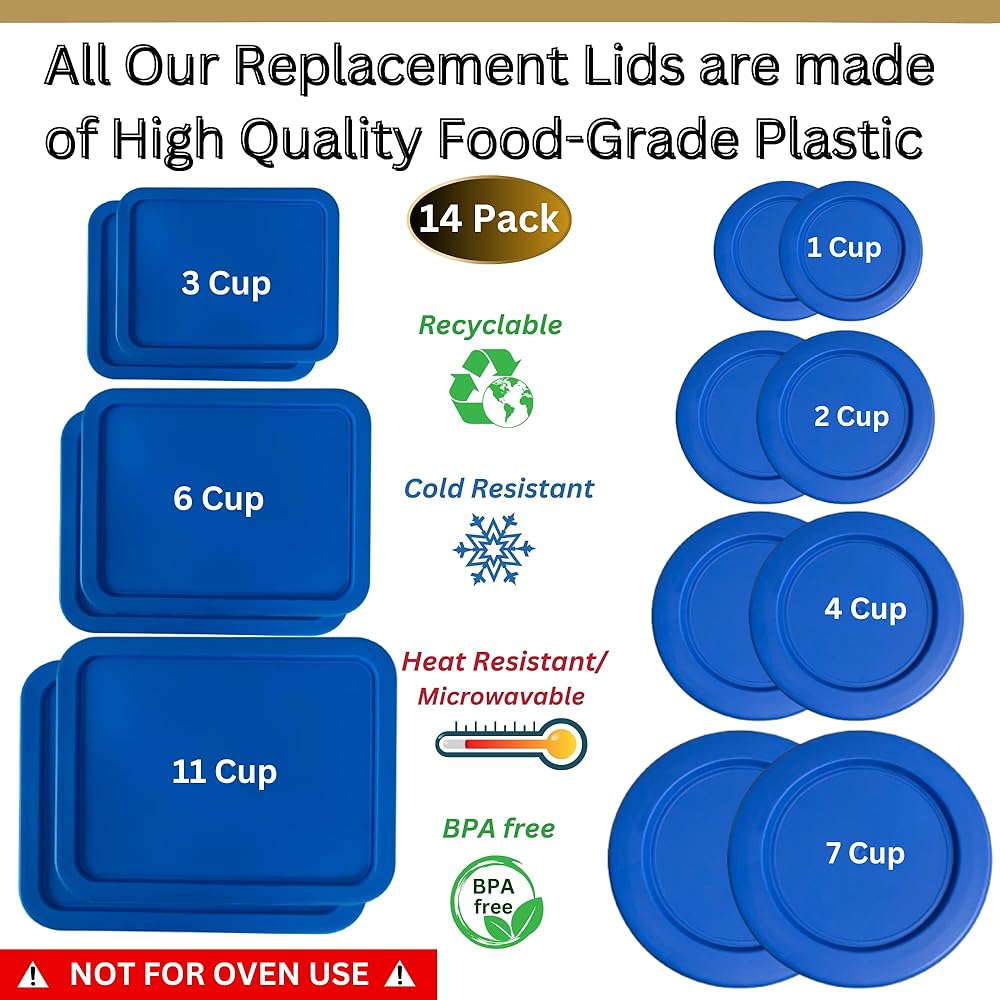 Are you looking for the perfect lid replacement to your lost or cracked container lids? Or are you sick and tired of using covers that keep food odors, flavors or stains? Well, look no further we've got the ideal lid replacements! INTRODUCING Klare Ware 1, 2, 4, 7 Cup Round and 3, 6, 11 Cup Rectangular Food Storage Containers Replacement Lids. Perfect Fit, specifically made your storage containers, these easy-open replacement bowl lids create an airtight seal to your bowls, reducing leaks & spills. A practical and convenient way for reheating, serving, carrying food on the go and storing leftovers or keeping food covered before preparing and serving. Thoughtfully Packed with: 8 round 1, 2, 4 & 7 cup round lids (Two of Each Size) & 6 rectangular 3, 6 & 11 cup lids (Two of Each Size). Who Needs Plastic wrap?!? Keep Meals and Leftovers Fresh and Stored. Perfect for food prepping. These lightweight, sturdy, air-tight lids are entirely crafted from high quality, food grade plastic for safe and healthy sealing performance. Non-stick, and BPA free. Can handle the cold and heat. Sturdy and strong, these airtight lids are microwave, freezer and dishwasher (top-rack) safe. Convenient for leftovers storage, for food prep or for those that use their containers like bento boxes. Safe for super easy and convenient meals, warming right from the fridge. What's more, these lids are non-stick, so you don't have to worry about food sticking. The lids will NOT pick up unwanted food flavors, food odors or food stains, No more junk! Once the prepping, reheating or leftover storing is done, clean-up is a breeze. For hassle free cleaning, place in the top rack of your dishwasher. Klare. Ware lids dry quickly and store conveniently, ready for the next use. Don't Settle for Less, Get the Perfect Replacement for Your KlareWare, Pyrex or Anchor Hocking Round Glass Containers - CLICK ADD TO CART NOW!!!