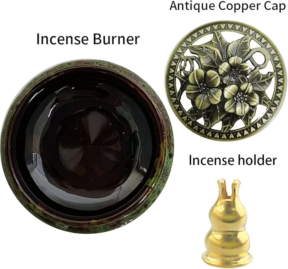 • 【تصميم رائع】 1 مبخرة سيراميك في كل عبوة لالتقاط الرماد وتجنب سقوطه في كل مكان. 1 حامل بخور قرع اللوتس النحاسي، قوي بما فيه الكفاية. غطاء من خليط معدني بتصميم مجوف وملمس صلب وأنيق.