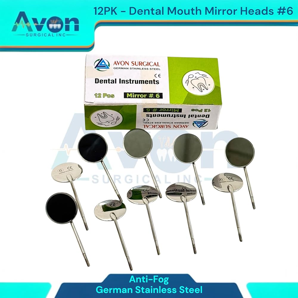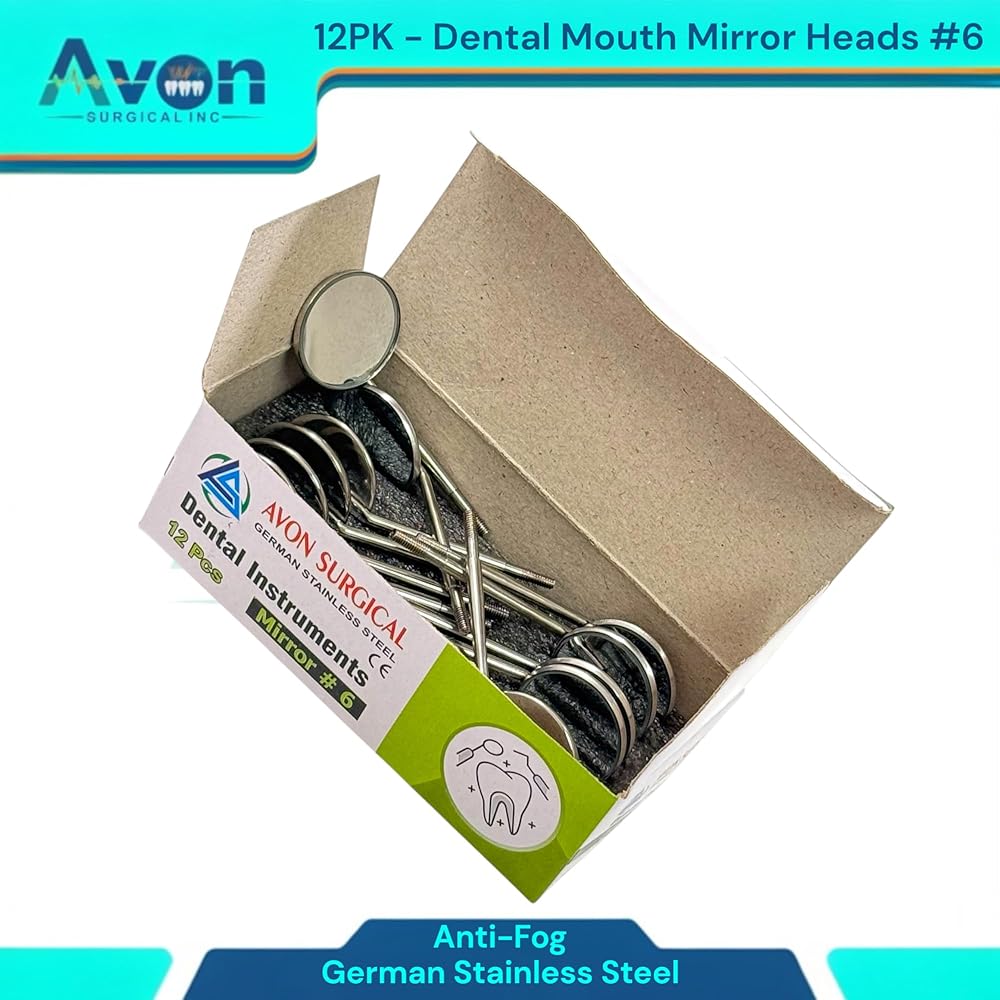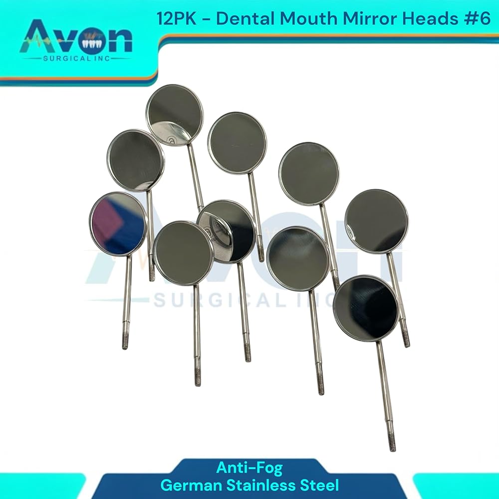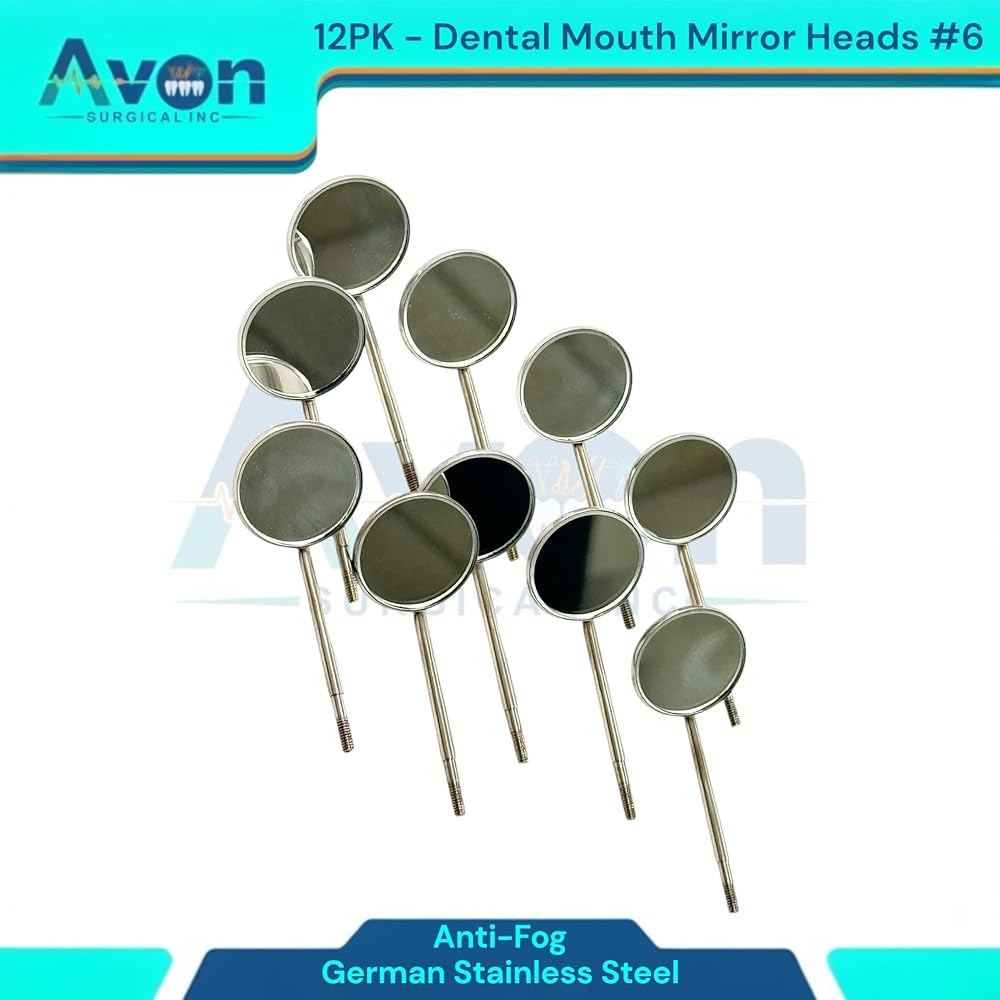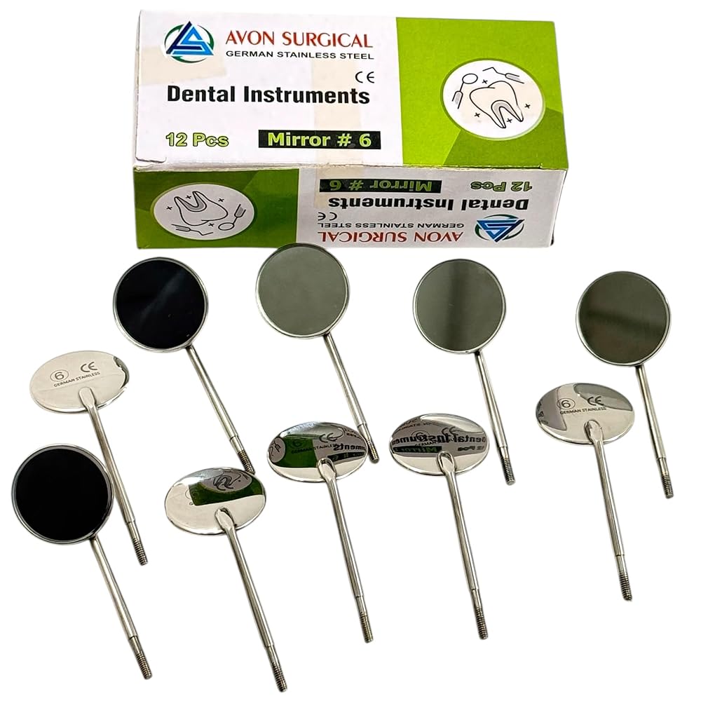 Cost-Effective Bulk Pack: This convenient set of 12 mirror heads offers excellent value, providing a reliable supply for busy practices, dental students, or individual professionals. Reduces procurement frequency and ensures you always have a fresh, sterile mirror readily available. Standard #6 Size & Cone Socket Design: Universal #6 mirror size provides optimal viewing for a wide range of dental procedures. The precision-engineered cone socket thread ensures a secure, wobble-free fit with all standard cone socket dental mirror handles, allowing for quick and easy replacement. Optimal Clarity & Reflection: Meticulously polished mirror surface delivers bright, crisp images for superior visibility, aiding in accurate diagnosis, detailed examination, and precise treatment. Essential for identifying small carious lesions, checking margins, and assessing soft tissues. Premium German Stainless Steel Construction: Crafted from German stainless steel, known for its exceptional durability, corrosion resistance, and ability to withstand repeated sterilization cycles (autoclave, chemiclave, dry heat). Guarantees long-lasting performance and hygiene.
