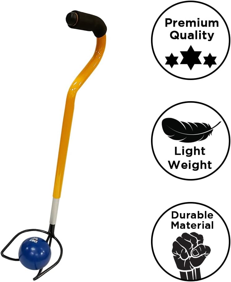 Upgrade your track & field training with our Ultimate Shotput & Hammer Retrieving Tool, built with durable steel for long-lasting performance indoors or outdoors. Featuring 6 adjustable heights from 24" to 29", it adapts to different users, reducing unnecessary bending and preventing injuries. The ergonomic foam handle ensures a secure, comfortable grip for effortless use. The deep cup design securely holds shot puts and hammers of any size, allowing quick, efficient retrieval, saving time and energy. Ideal for athletes, coaches, and officials, this tool enhances performance and streamlines training sessions. Say goodbye to back strain and hello to convenience with this must-have track & field tool!