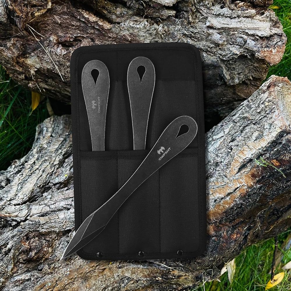 • 【Durable 3-in-1 Sheath for Easy Carrying】 The throwing knives set comes with a durable nylon sheath that holds all three items together, ensuring safe and easy transportation. The sheath not only provides protection but also enhances the set's aesthetics, making it an excellent gift for throwing knife enthusiasts among friends and family.