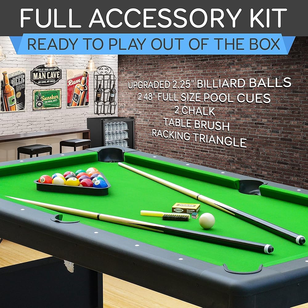 مجموعة كاملة من الملحقات - استمتع بتجربة البلياردو الغامرة مع مجموعة ملحقاتنا الكاملة. يتضمن كرات البلياردو ، 2 إشارات ، فرشاة ، مثلث الكرة ، والطباشير. يوفر كل ما تحتاجه من أجل لعبة حمام سباحة رائعة مع الأصدقاء والعائلة