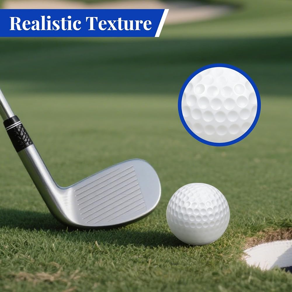 【Dimpled Texture for Spin Control】Innovative dimpled design mimics real-ball aerodynamics, ensuring stable flight and consistent spin. Enhances accuracy for approach shots, chips, and putts.Engineered with reduced distance technology to mimic real ball flight while staying within confined spaces. Ideal for mastering swing accuracy without chasing long shots.
