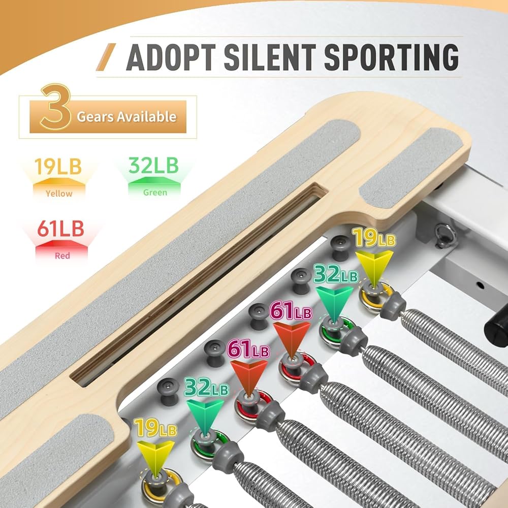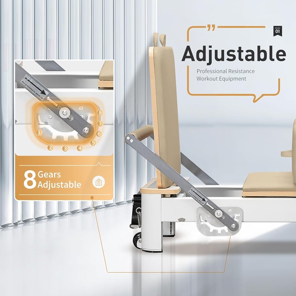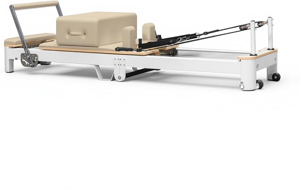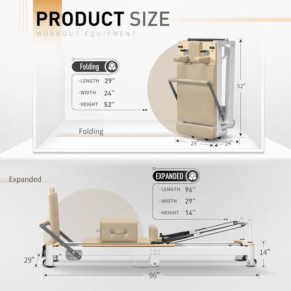 ميزات مصلحة بيلاتيس القابلة للطي -الهيكل الرئيسي مصنوع من خشب القيقب والأجزاء مصنوعة من الفولاذ المقاوم للصدأ والألمنيوم. يتم تأمين الطية بأرجل معدنية قابلة للارتفاع ، كما تم تجهيز المدرب أيضًا بنظامين سريعين على الدواسات على القدمين وقضبان محملة بنابض من أجل تمرين مريح وغير مقيد. تم تجهيز نظام الكرسي المضغوط بـ 8 عجلات من البولي يوريثان للحركة المتوازية الوثيقة وحركة ناعمة وهادئة.