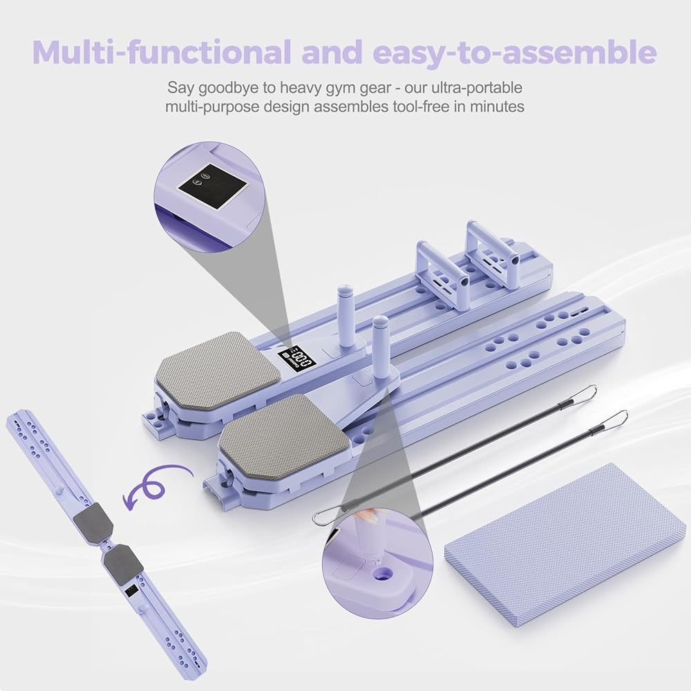 ⚡ التحول الفوري والتتبع الذكي: تعظيم الكفاءة! التبديل بين AB Slider أو Mini Reformer أو Stepper Modes Seconds-بدون أدوات ، فقط مجموعة نقرة واحدة! بالإضافة إلى ذلك ، فإن شاشة LCD مدمجة (غائبة على اللوحات الأساسية) تتتبع المقاييس الحاسمة: وقت التمرين ، والممثلين ، والسعرات الحرارية المقدرة المحترقة. مراقبة التقدم بشكل موضوعي وتدريب مع دقة تشبه الاستوديو لتحقيق الأهداف بشكل أسرع.