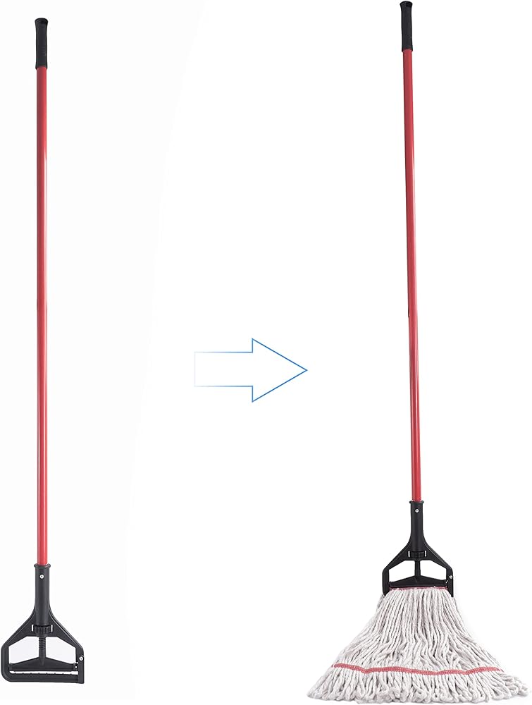 Most optimal for 1" headband mops - Features the iron handles for corrosion resistance and a good strength-to-weight ratio, which is lightweight and ideal for general purpose mopping. his heavy duty commercial mop handles with jaw clam match well with most mops, such as cotton, string, looped, microfiber mops