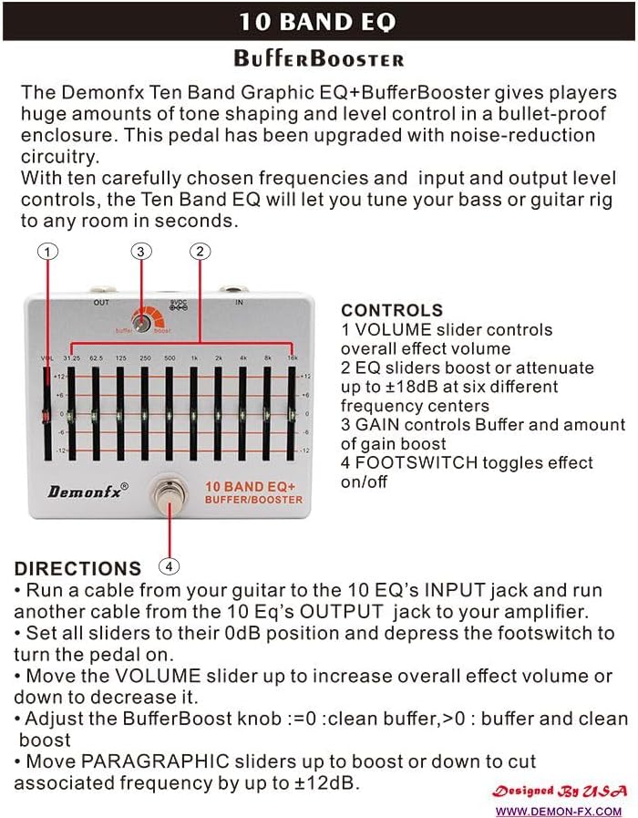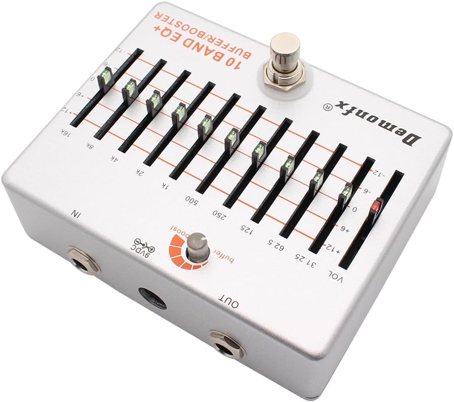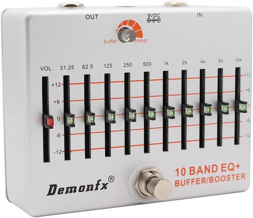 Demonfx brings you the inspiration of these legacy units along with a price within reach of all players. This is new 10 Band Graphic Slide EQ from Demonfx. EQ's are great for sound sculpting and offers a wide band of tonal possibilities. Also features a unique Boost or Buffer knob depending on taste or need. Just arrived and only a few for sale. Lots of tone options and adjustment.