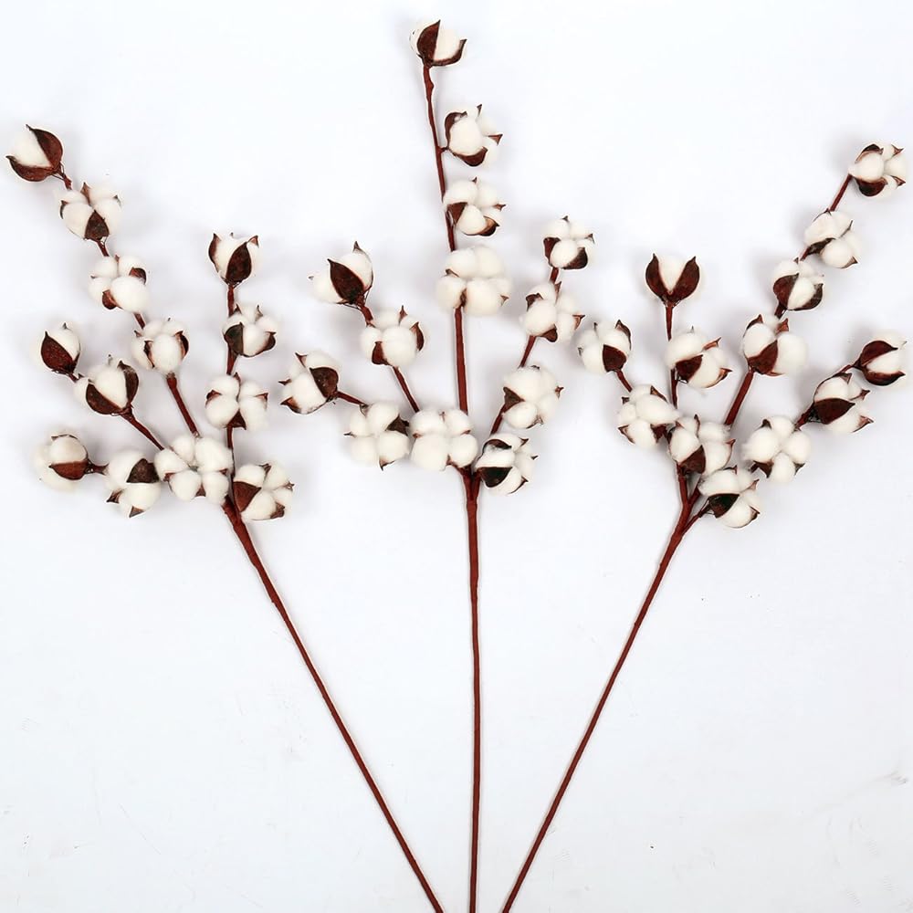 سيقان قطنية مثالية 3 قطع 13 كرة لكل جذع طويل القامة على طراز المزرعة فروع قطنية زينة زفاف ريفية مزهرة