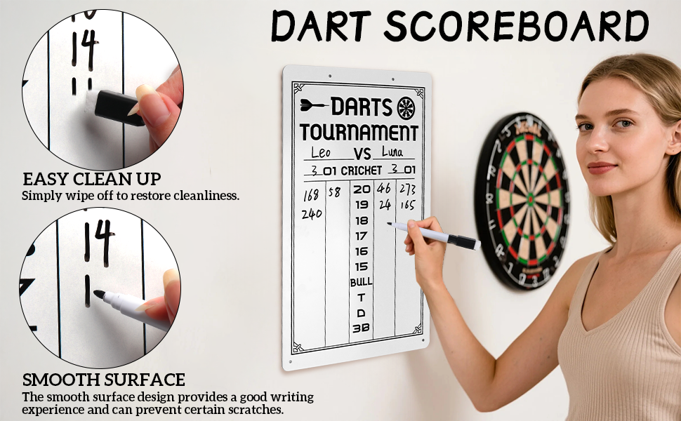 تسجيل درجاتك: تخطيط وأرقام واضحة ومميزة تجعل الدرجات يمكن التعرف عليها بسهولة وقابلة للقراءة ، مريحة للحكم لتتبع حالة مسابقة ألعاب الكريكيت و 01 DART بطريقة سريعة.