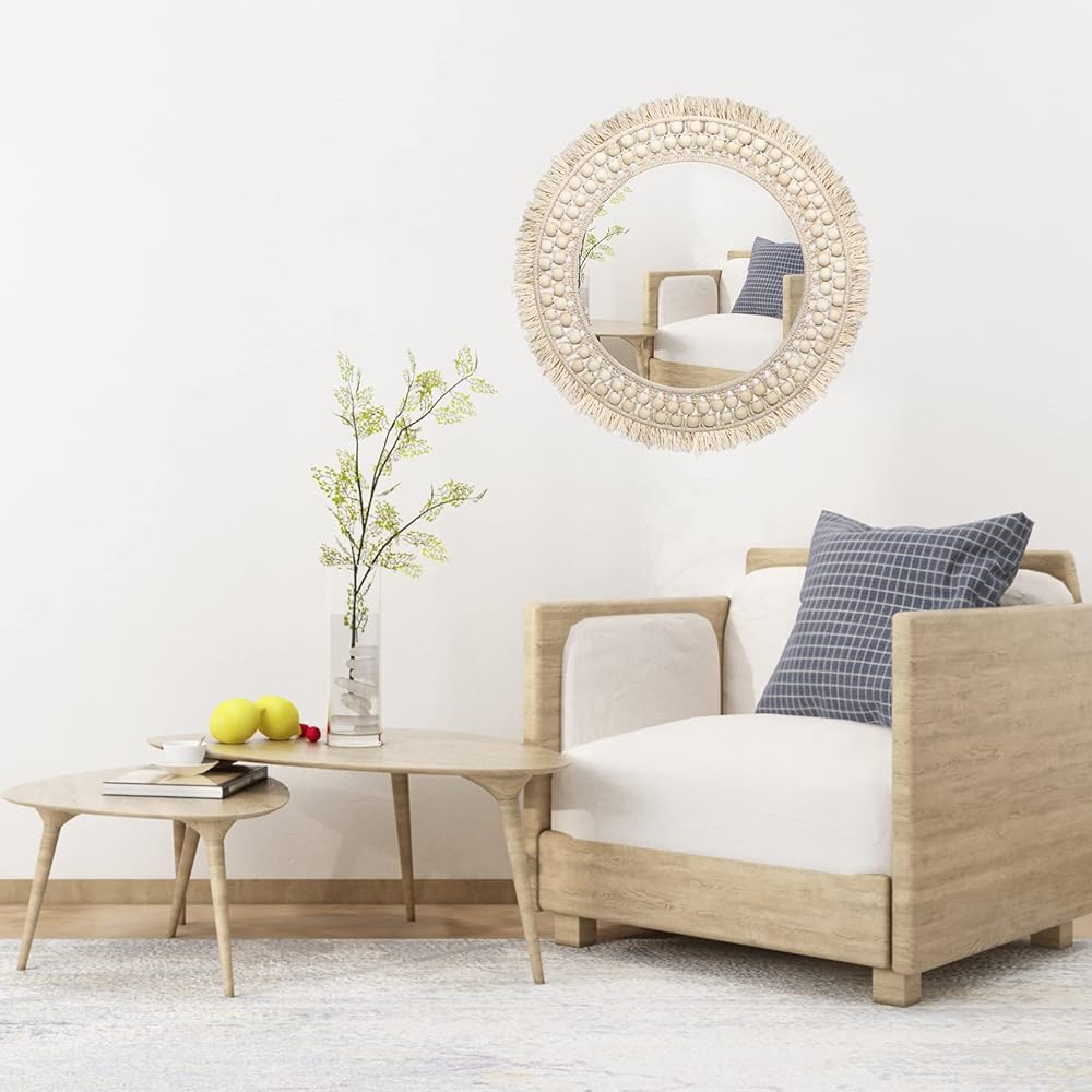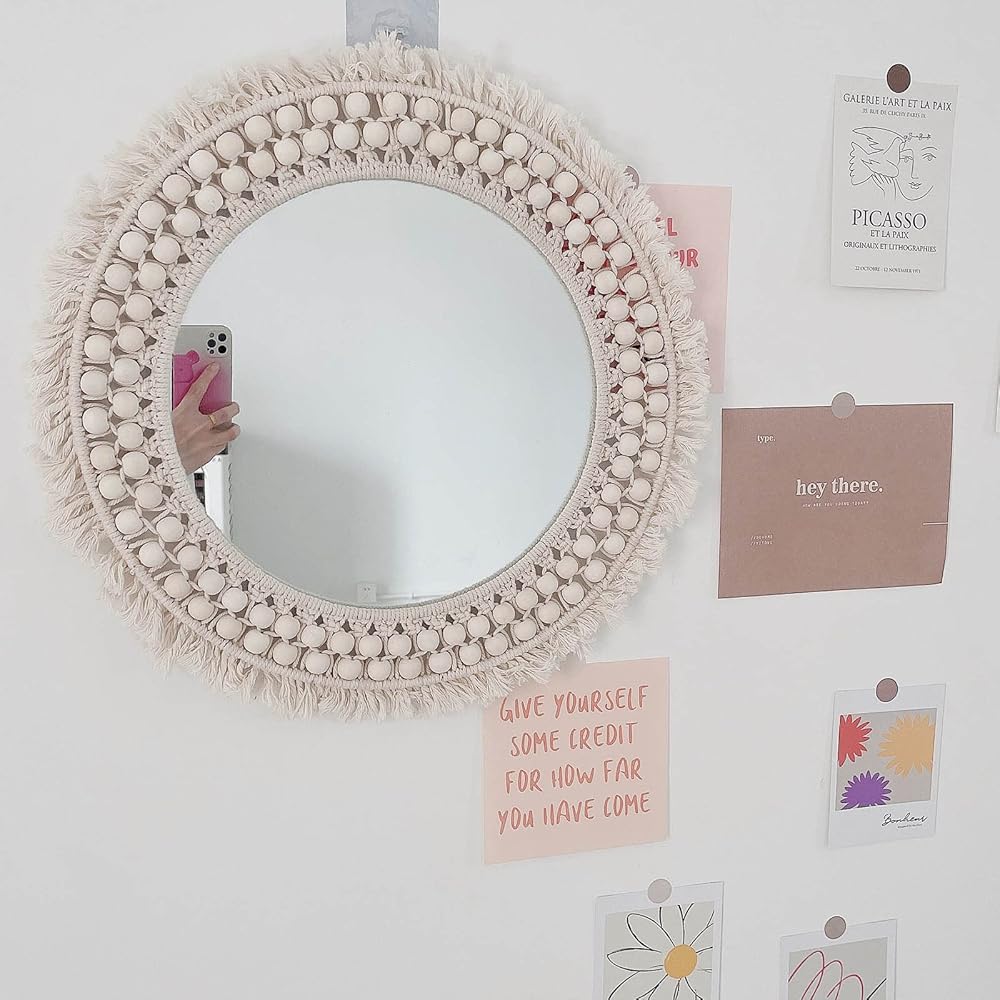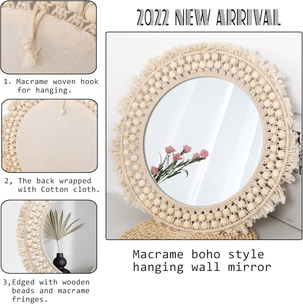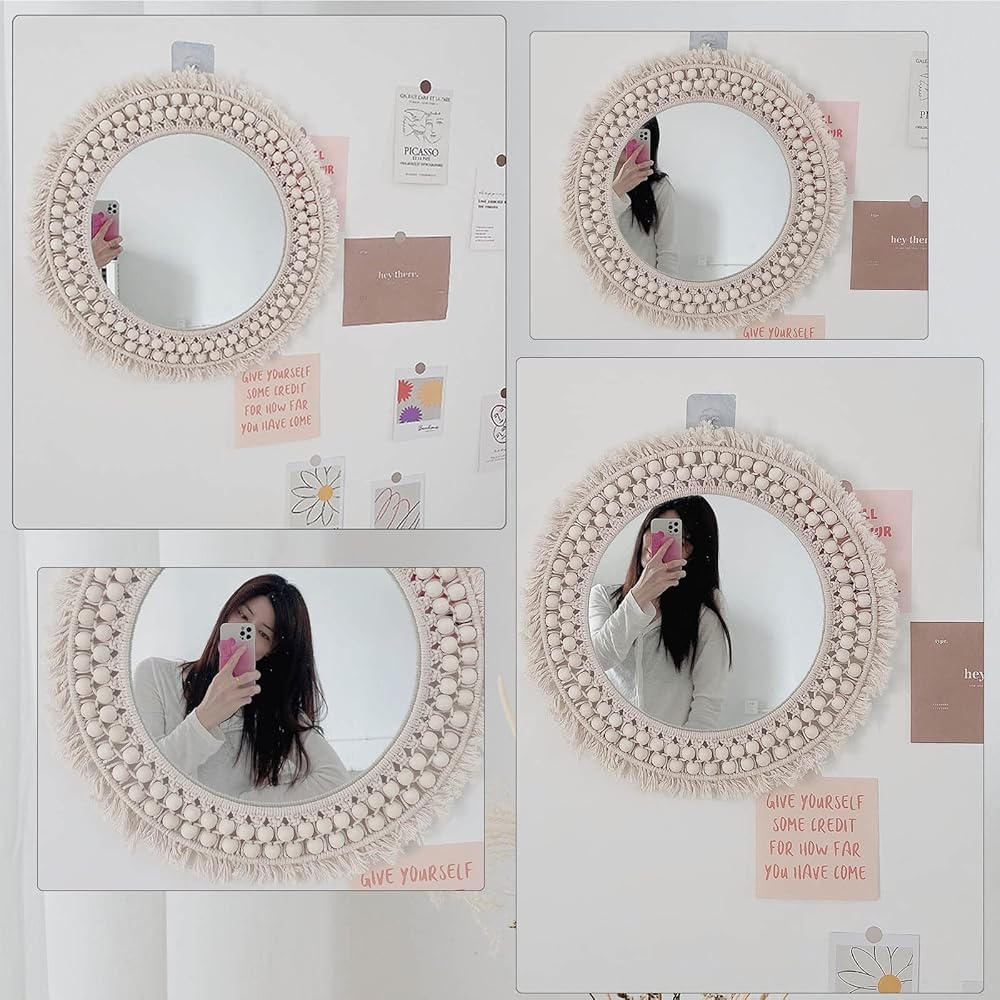 - ✿ مرآة حائط معلقة مزخرفة: حواف قطنية منسوجة يدويًا، تضفي إحساسًا بالانسجام والراحة لغرفتك. مناسبة لجميع أسطح المناضد، وتتناسب مع جميع أنماط ديكور المنزل الداخلي، لافتة للنظر وأنيقة.