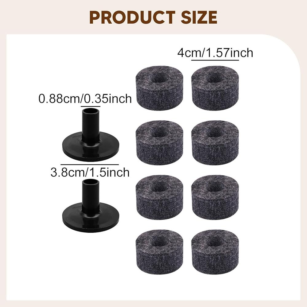 - 【Complete Package】: The package includes 8 felts pads, 2 cymbal sleeves, to ensure you have everything needed for setup or replacement tasks