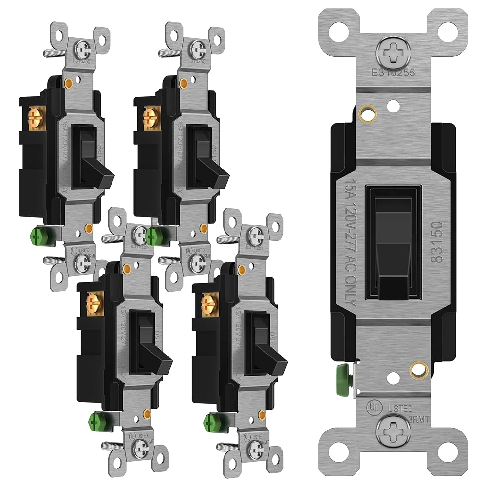 The ENERLITES 15 amp 3 way black toggle switch can replace any in-wall light switch of the same style. This listing is for a pack of 10 toggle light switches. This wall switch is made from high-quality Polycarbonate Thermoplastic (PCT) material for high resistance to heat and impacts. PCT is virtually indestructible, making it ideal for long-lasting applications. This makes the electrical switch ideal for both residential and commercial locations, such as houses, condos, schools, stores, restaurants, hotels, and more. Switches come in individually packaged boxes and are clearly marked with specifications and safety compliance. These 15 amp toggle switches are for 3 way or single-pole use and wiring instructions are included. This product is UL listed and includes a one-year warranty.