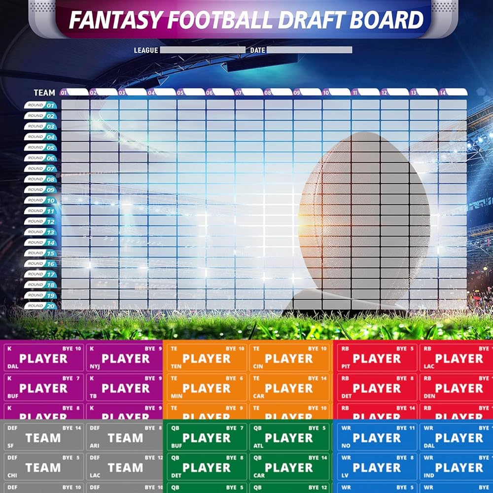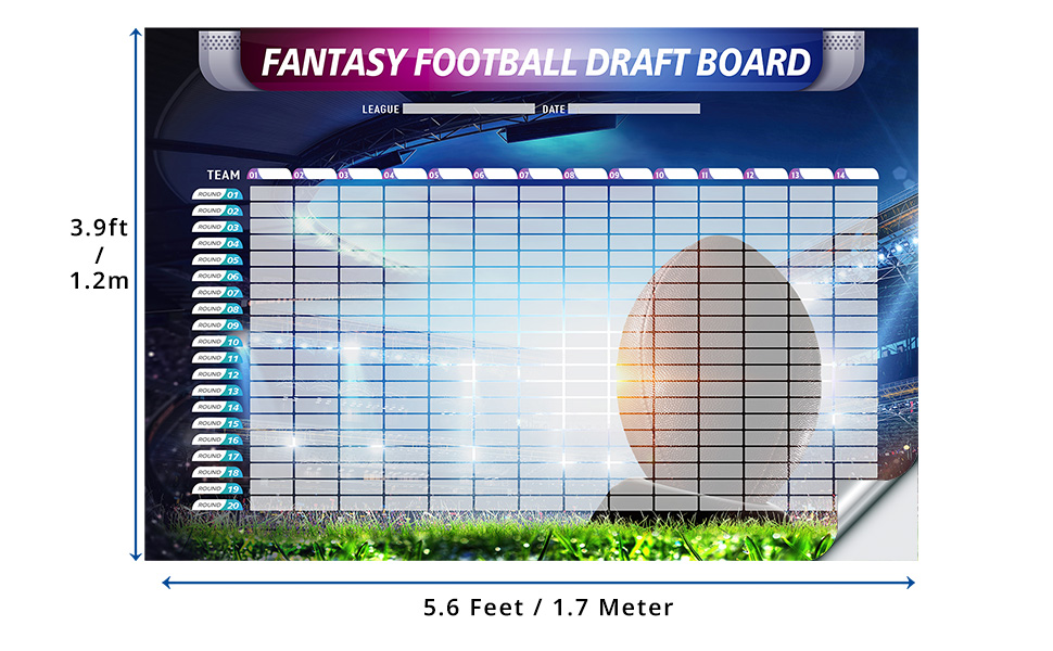 • [XL Fantasy Football Draft Board 2025] تبلغ طقم لوحة مسودات الخيال هذه 5.6 × 3.9 قدمًا ، وكبيرًا إضافيًا ، حتى 14 فريقًا 20 جولة. مادة الفينيل القوية غير مريحة ، وهي مقاومة للماء.