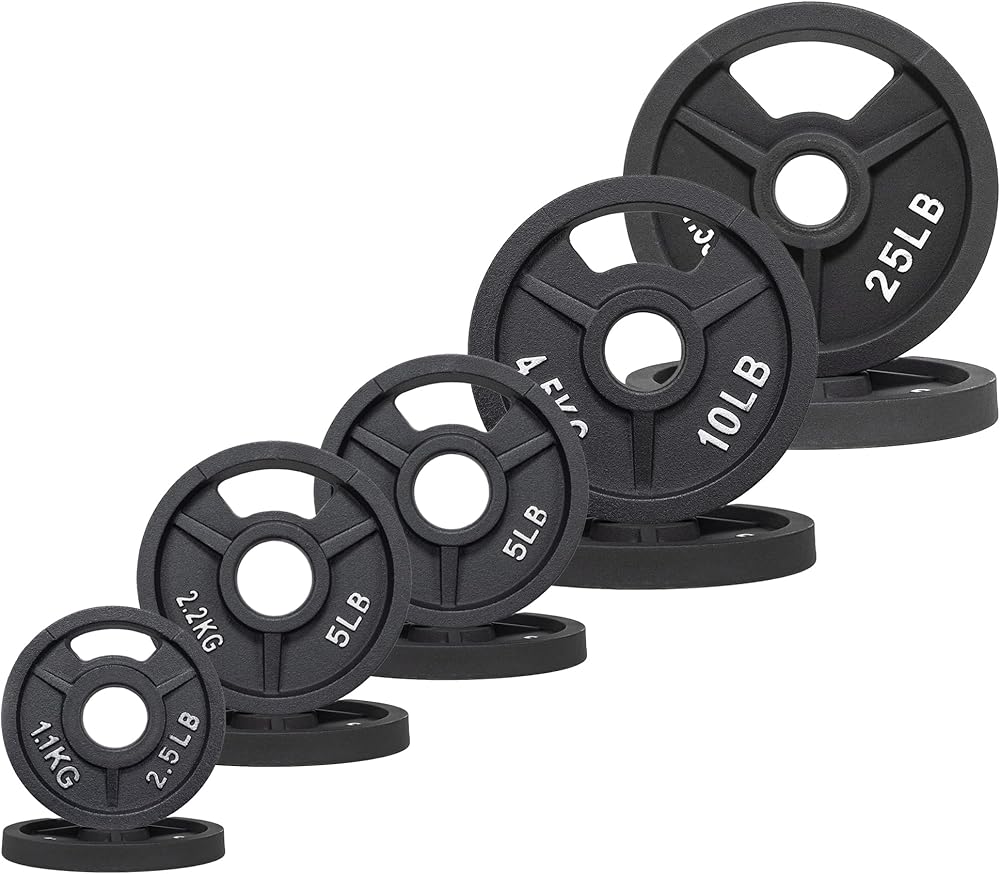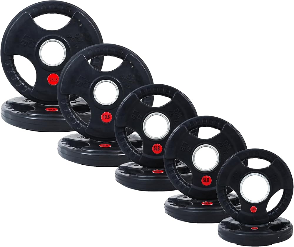 • مجموعة 45 رطل: 2x 2.5 رطل ، 4x 5 رطل ، 2x 10 رطل ، زوج من مقاطع السلامة.