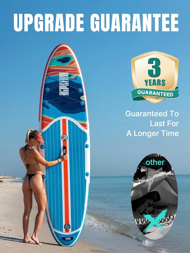 Niphean inflatable paddle board is of great quality, highly durable and stable. From the design to the production process, we ensure that every detail of the sup paddle boards meets our high standards. All blow up paddle boards package comes with all the necessary sup accessories to get started right away, including 1 adjustable paddle,1 StabilTrac Fin,3 detachable fins, 1 safety leash, 1 pump, 1 sup backpack, 1 waterproof phone bag, 1 repair kit, and 3 product instructions. It's a great option for all kinds of water sports, including surfing, fishing, camping trips, boating, using limited transport/storage space. Every Niphean's blow up paddle board offers a 30-day return policy and a 3-year warranty to ensure complete satisfaction of customers.