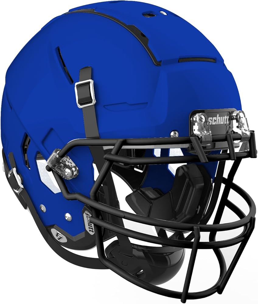 The Varsity Schutt F7 helmet is the newest helmet in the Schutt Sports family of football helmets. This helmet features the new Tectonic Plate 3DM system to help improve the management of rotational energy and impact absorption. The moveable plates, along with five other layers of protection, create the ultimate energy management system. The Schutt F7 has the TPU Surefit AiR liner, allowing air to move more freely creating a more secure and customized fit. The F7 face guards offered features a tapered design for increased range of motion and decreased impact area, promoting more of a glancing blow on frontal impacts.