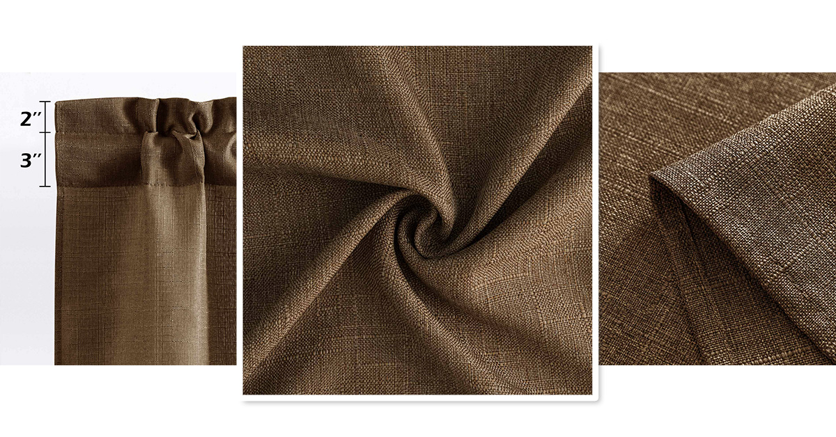 Valea Home فو الكتان المطبخ غنيمة الستائر الستارة ريفي قضيب جيب الستارة الستارة لوحات التخليص لنافذة صغيرة 27 × 38 بوصة، 2 لوحات، البني