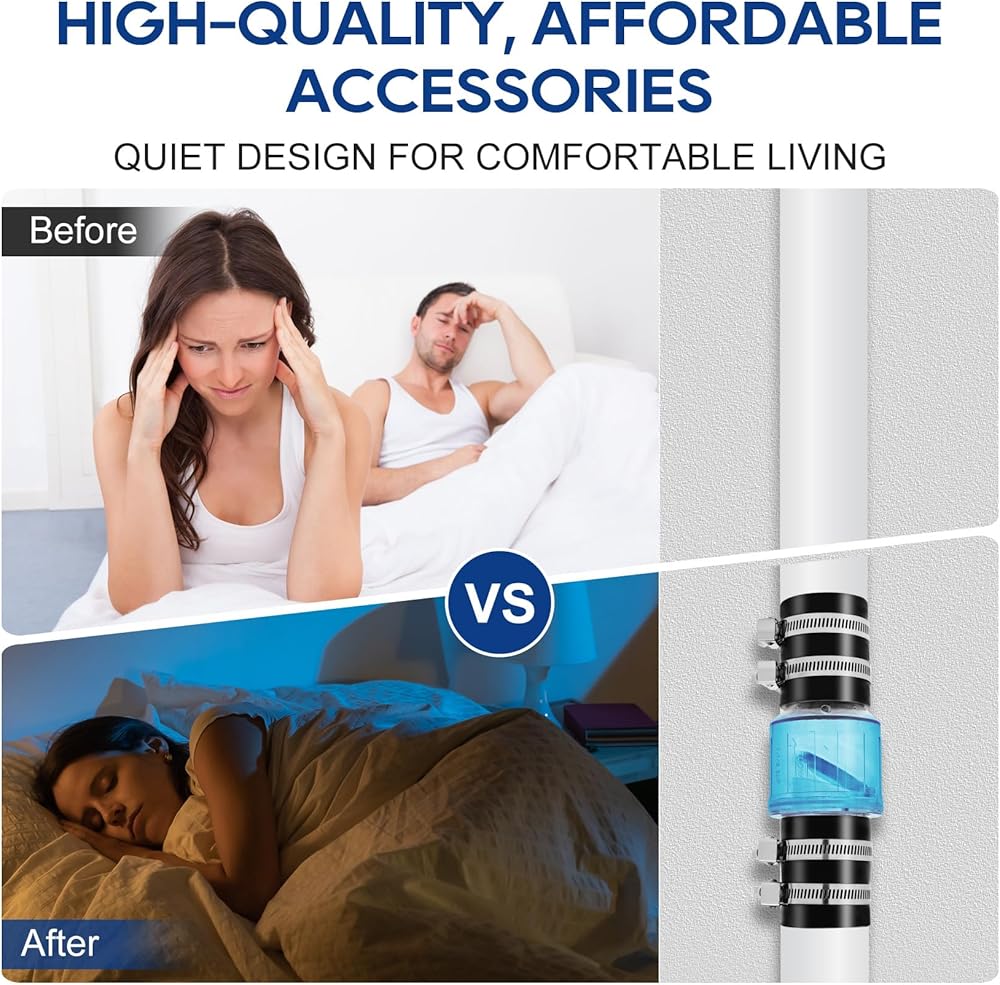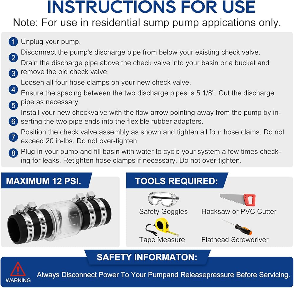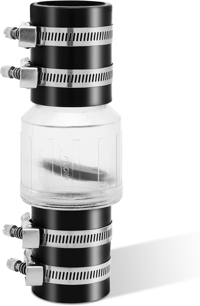 WIDELY APPLICABLE: The 2inch sewage check valve is equipped with stainless steel clamps and rubber fittings, effectively reducing the risk of rupture and leakage, suitable for 2-inch Schedule 40 pipes. Ensures 7-1/4” pipe clearance