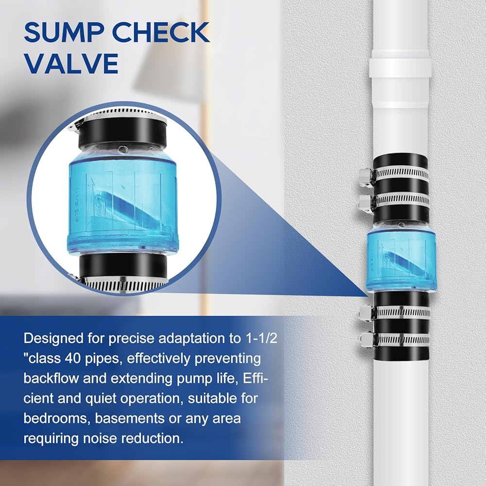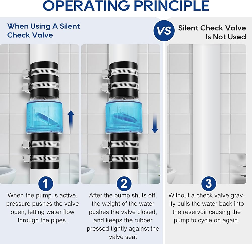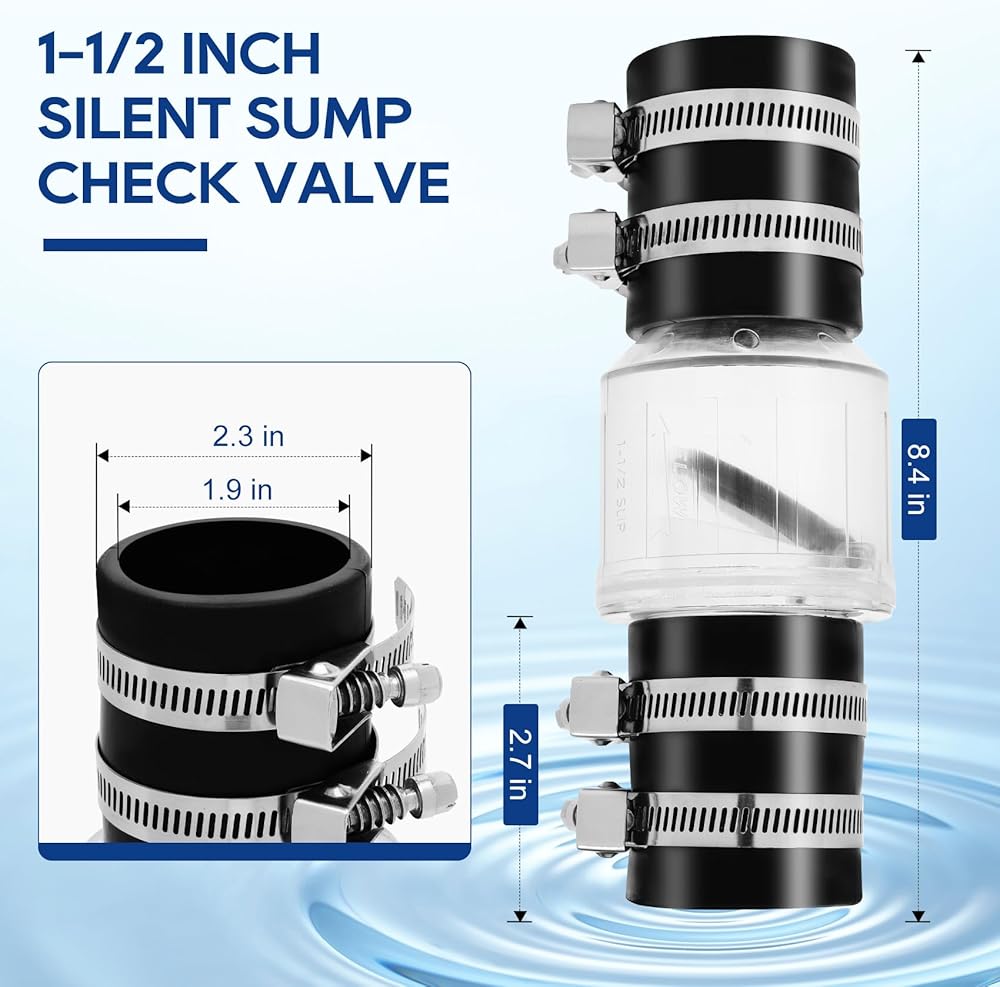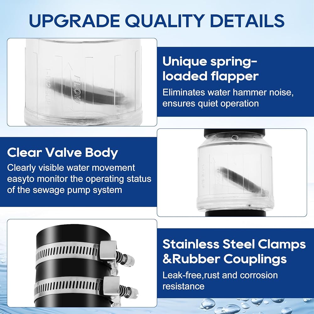 UPGRADED SILENT DESIGN: Silent sump pump check valve, using upgraded spring-loaded baffle technology, effectively eliminating water hammer noise generated by the impact of water flow, smoother and quieter than ordinary check valve operation