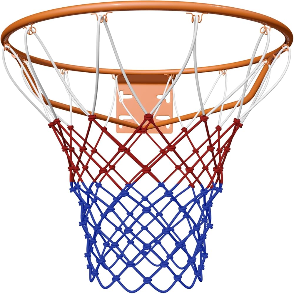 - Package Content: 1x basketball rim with a heavy duty all-weather nylon nets, 4x expansion screws.