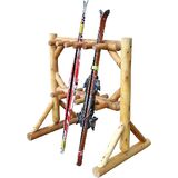 The Outdoor 11 pair Freestanding Ski + Snowboard Rack is built to hold 11 pairs of skis. The top rail of this rack is 50" off the ground. The lower rail on the rack is 25" off the ground and holds up to 11 Snowboards, short pairs of skis, or pairs of ski poles. This rack is 100% constructed of Northern White cedar. It not only cares for and organizes your Skis, Snowshoes, and Snowboards. With finishing options, you can match dock, house, etc... or let it turn silver/gray with no finish, or you can use your own finish if so desired. We have worked with logs for over 23 years crafting log homes, furniture, Ski Racks, and kayak racks. Each joint is glued and screwed for longevity. We use glued 2" mortise-and-tenon joinery wherever possible. Hand-made and finished by Log Artisans in Northern Wisconsin.
