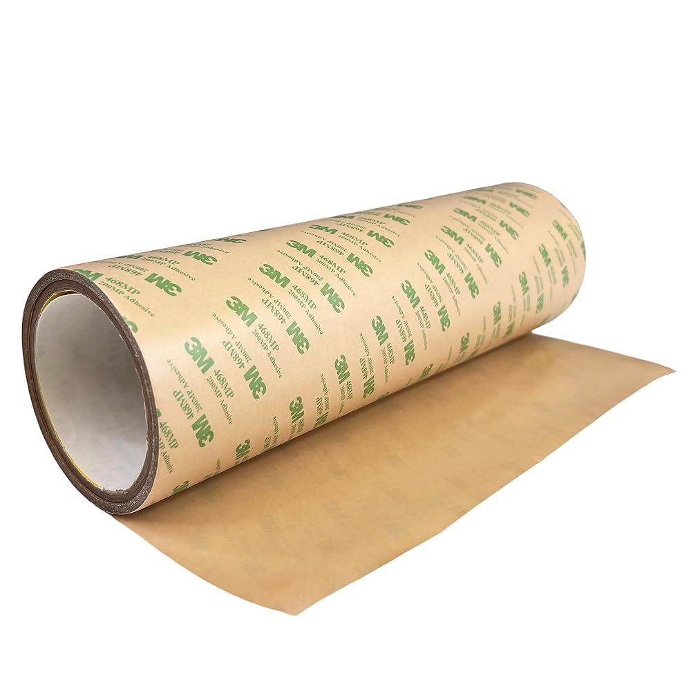 Discover the Dbstar 3M Adhesive Transfer Tape 468MP — crafted with a durable 5.2 mil adhesive layer, ideal for splicing and laminating tasks involving metals and high surface energy (HSE) plastics. Its extra thickness improves wet-out, delivering strong adhesion even on lightly textured or uneven surfaces. Multiple Uses: This versatile tape functions as a no-cut transfer paper, PEI sheet for 3D printers, 3D printer glue, double-sided Kapton tape, phenolic sheet, and general-purpose adhesive sheet for PEI heated beds. Preparation Tips: For maximum adhesion, make sure surfaces are clean and dry before applying. How to Apply: Best applied at room temperature or up to 100°F. Press firmly for at least one minute to create a strong bond. Using moderate heat (100°F–130°F) can help the adhesive conform more closely to the surface. Durability: The tape handles short bursts of heat up to 400°F and extended exposure up to 300°F. It resists humidity effects even after a week at 90°F and 90% relative humidity. Once applied, it adheres well in chemically demanding environments — ideal for use with nameplates and decorative trim.