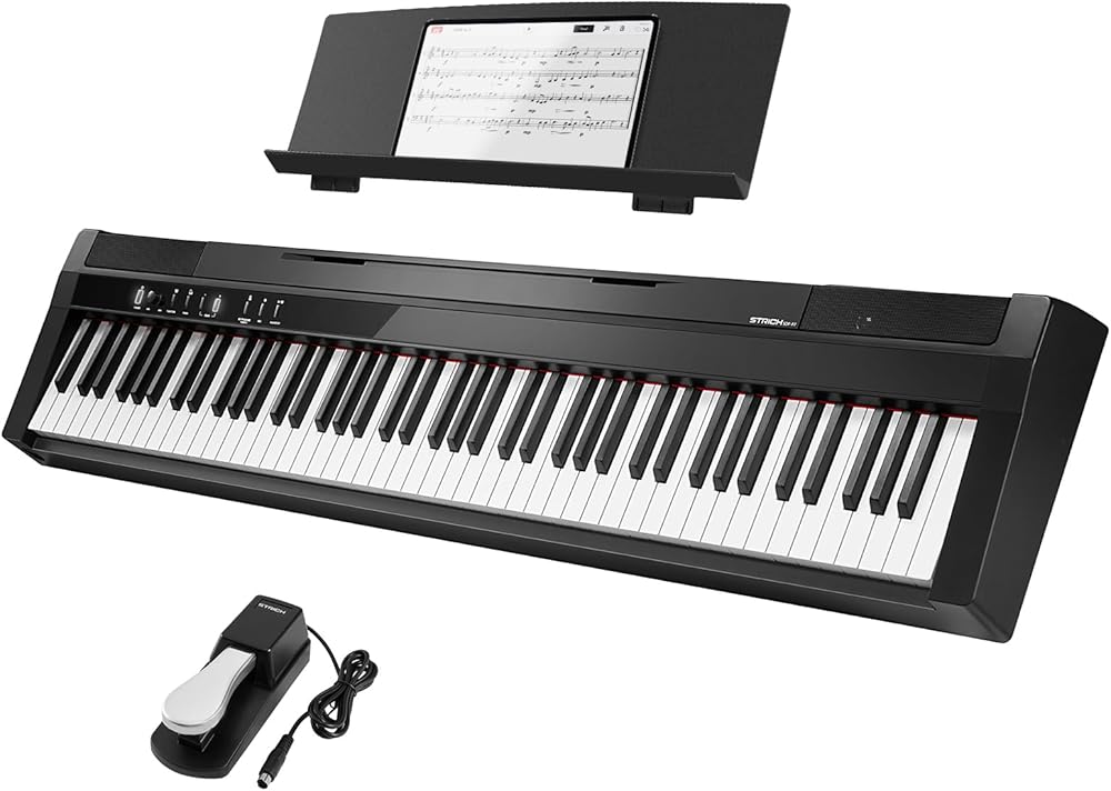 Strich Digital Piano 88 لوحة مفاتيح مفتاح الحجم الكامل ، البيانو الكهربائي المحمول للمطرقة للبالغين المبتدئين ، حزمة مع دواسة الاستدامة ، ملصقات البيانو ، راحة الموسيقى ، الأسود ، SDP-P7
