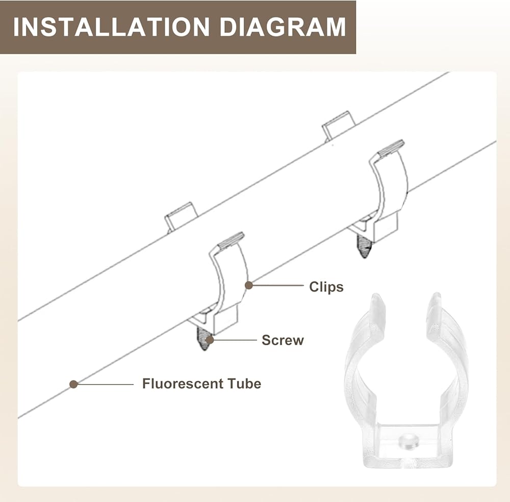 كيفية الاستخدام: 1. تأكد من أن البراغي تمر من خلال ثقب المقاطع. 2. ثم استخدم المقاطع لتثبيت مصابيح أنبوب الفلورسنت LED أو شرائط LED مستديرة.