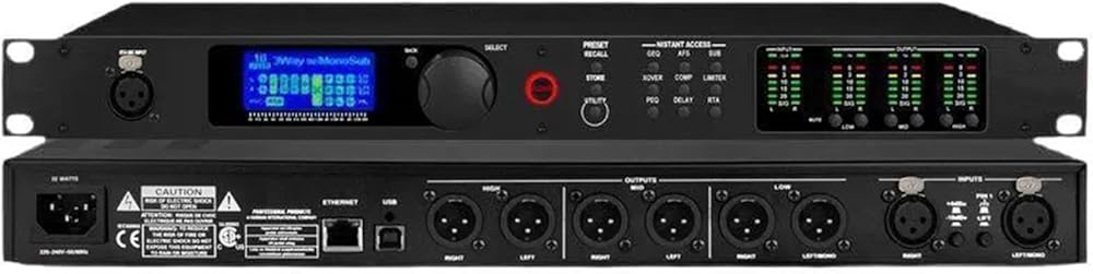 【LCD Sn】LCD sn to display channel and function settings, dedicated buttons to set all audio parameters and tools, LCD sn can display the current preset number and the selected input or output channel and its related parameters