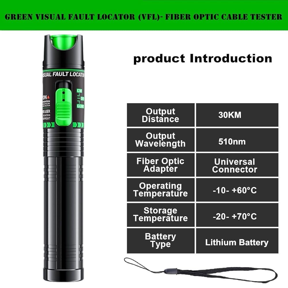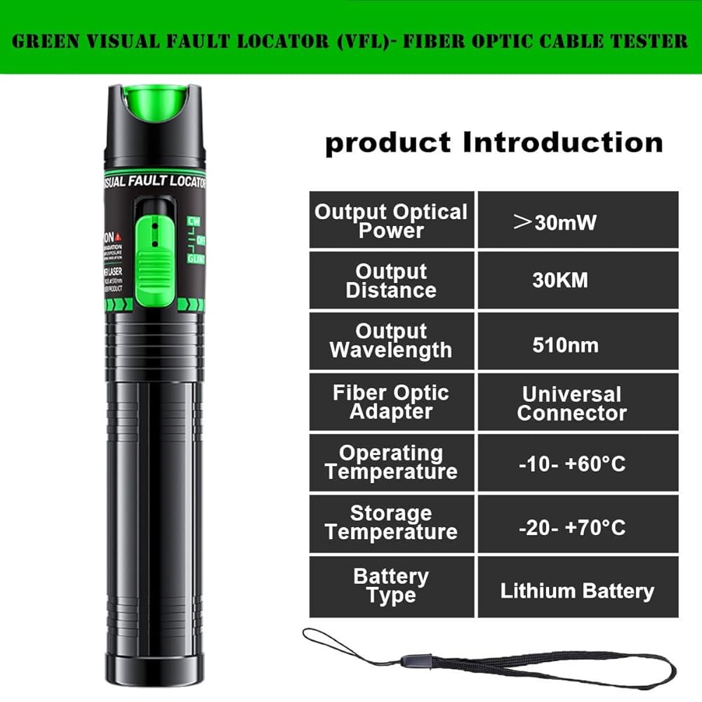 30mW High-Power Output: Penetrates up to 30-50km of fiber, revealing micro-bends and breaks even through protective jackets.