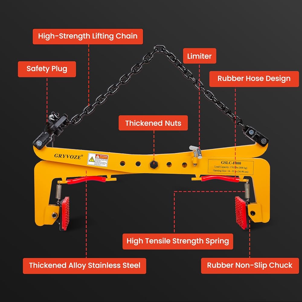 تعديل متعدد الوظائف: يتميز مشبك رفع الحجر بثقوب تصاعد قابلة للتعديل لضبط العرض السهل لتناسب أحجام الحجر المختلفة. الحجر الذي يحمل المشابك هو محدد يدوي يتحكم في ارتفاع فتح المشبك. ما عليك سوى إطلاق المحدد قبل رفع قبضة آمنة ، وضمان معالجة الحجر الآمنة والفعالة