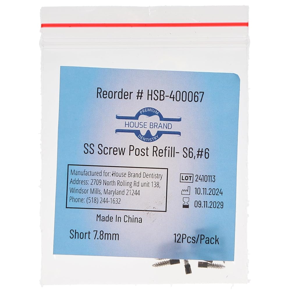 Stainless Steel Screw Post Refill - S6, #6 Short 7.8mm, Package of 12 posts.
