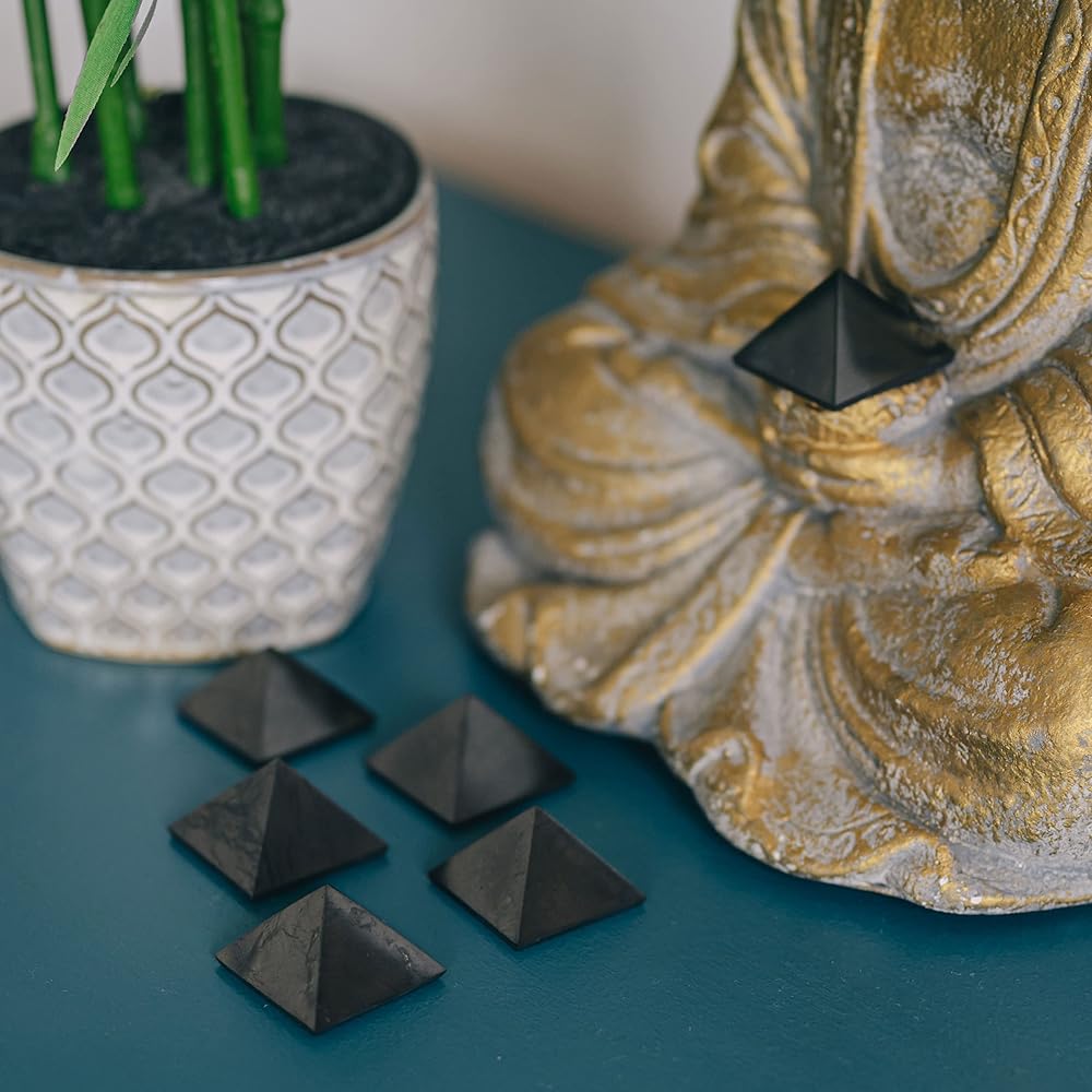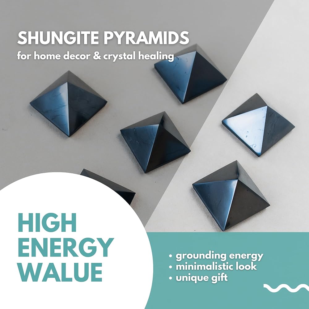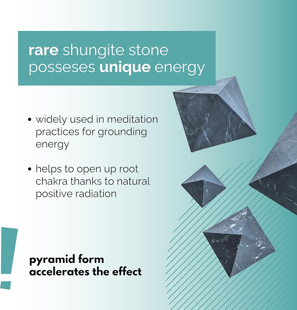 هرم شونجيت هو قطعة ديكور منزلية مريحة للغاية. يمكن وضعها أينما تريد: طاولة السرير وطاولة الكمبيوتر وبالقرب من التلفزيون وما إلى ذلك. تتميز أهرامات الشونجيت بنفس الخصائص المفيدة مثل الشونجيت الخام: هرم الشونجيت سيزيد من إنتاجيتك، ويحميك من إشعاع EMF و MMW (5G) وسيحسن صحتك.