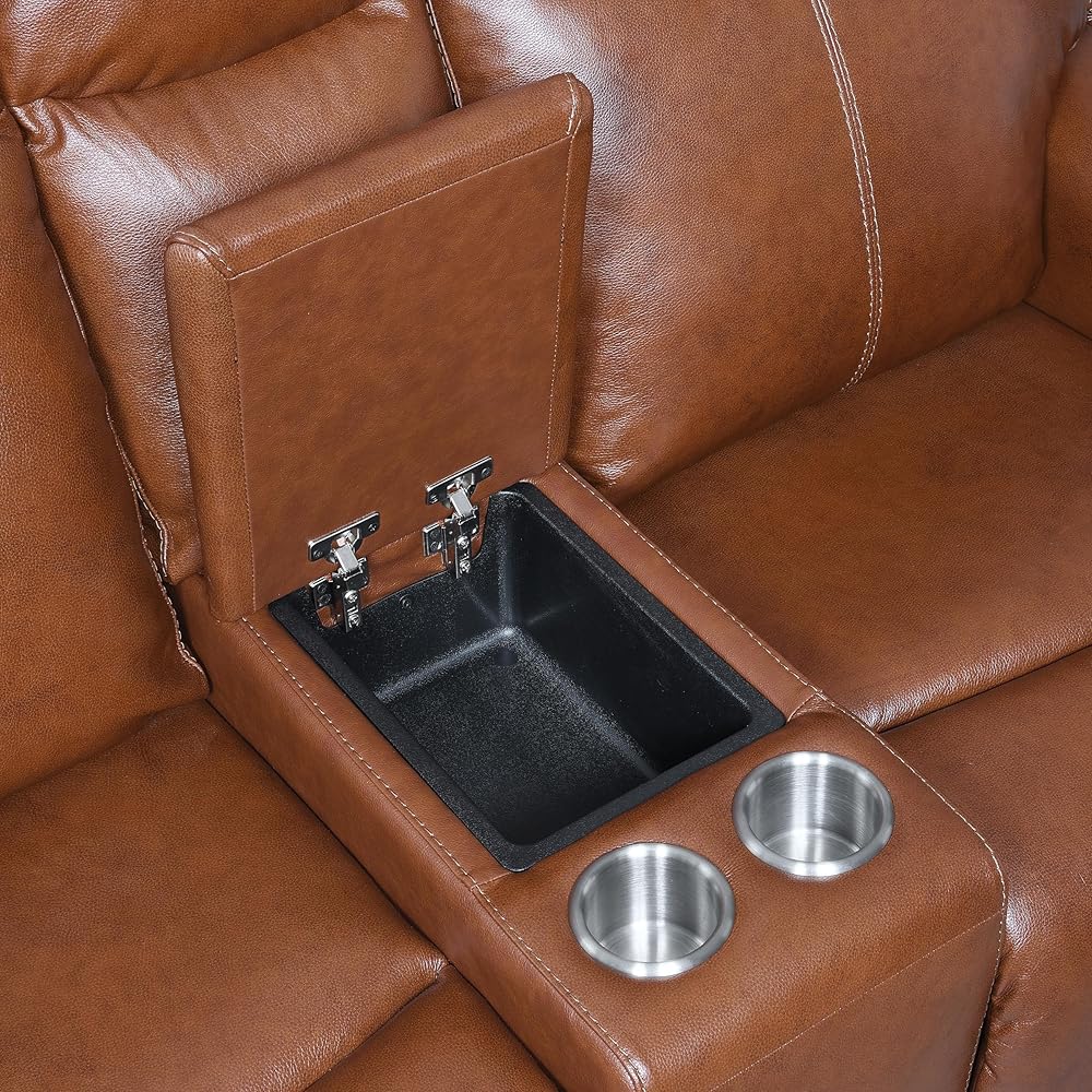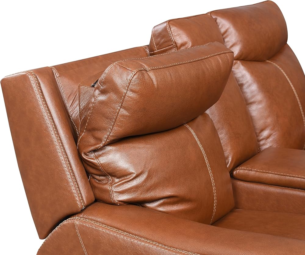 مجموعة حركة على الطراز المعاصر مجموعة من جلد الحبوب العلوي ، مسند رأس السلطة ومسند القدمين إلى الأمام ، شحن USB مريح