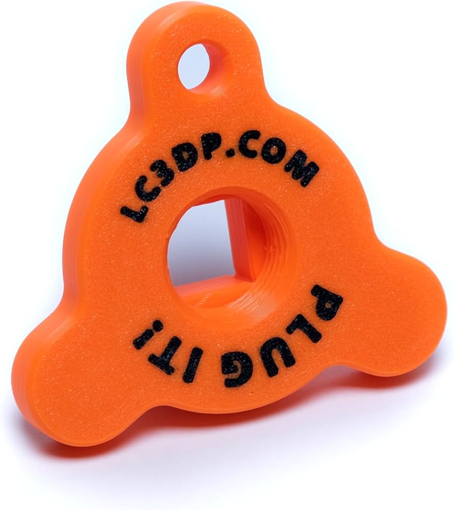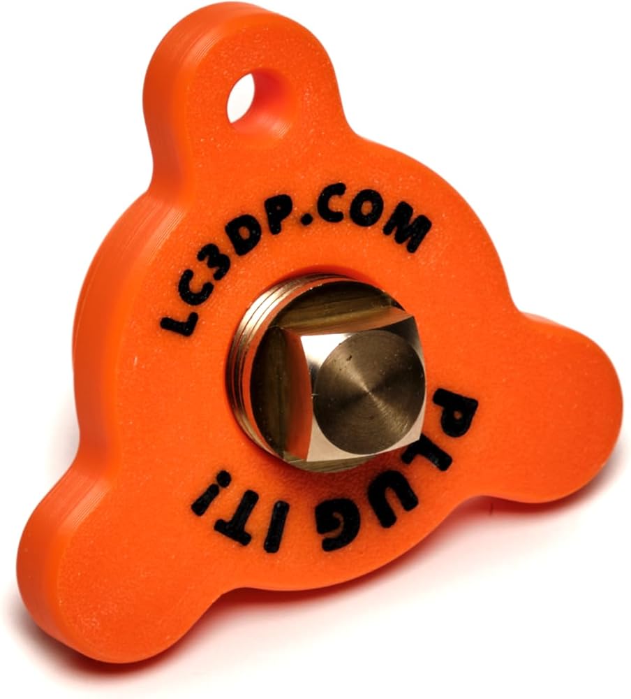 A handy high visibility boat plug wrench for installing, removing and storing your drain plug. The brass plug is NOT included, it is only in the pictures for reference. Fits standard 1/2" NPT boat plugs and is perfect for hand tightening your plugs. Store your plug in the back of the wrench when not in use and get rid of that rusty 9/16" wrench. Made from UV resistant ASA. Without the plug, the wrench floats! If you're on the water and your wrench sinks, you probably forgot to install your plug and have bigger issues with your boat sinking.