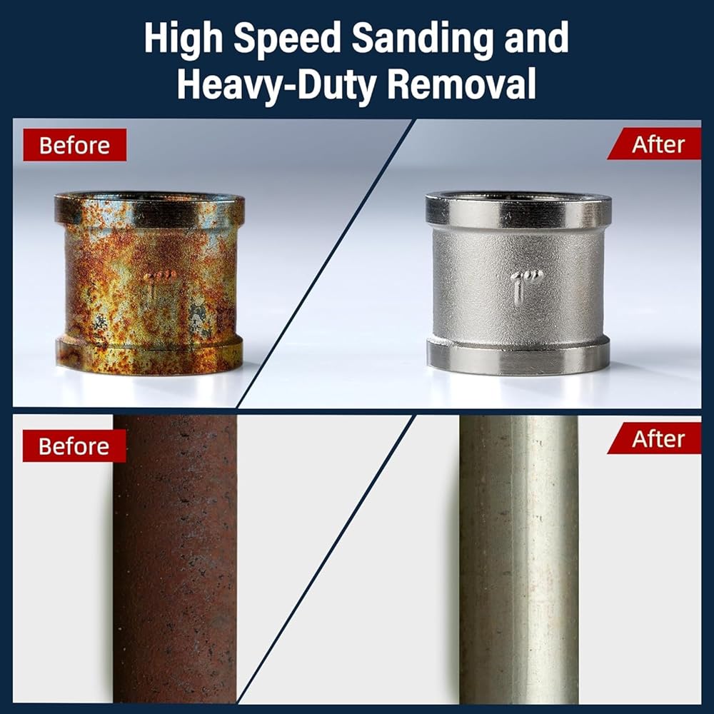 • Efficient polishing: Suitable for surface treatment of various materials such as metal, wood, plastic, etc., it can quickly remove burrs, oxide layers, and old paint, improving work efficiency.