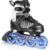 الزلاجات المضمّنة القابلة للتعديل: تتمتع الزلاجات المضمّنة للبالغين والأطفال بأربعة أحجام مختلفة ، صغيرة (10C-13C) للأطفال الصغار ، المتوسطة (1-4) للأطفال الكبار ، الكبار (5-8) للشباب ، X-Large للنساء البالغين (9-12) / الرجال (8-11). يرجى اختيار الحجم المناسب عن طريق التحقق من مخطط الحجم قبل الشراء. مع لمسة من زر الحجم ، يمكنك ضبطه لتناسب حجم قدمك. يمتد وقت الاستخدام ويقلل من تكلفة استبدال الأحذية المتكررة.