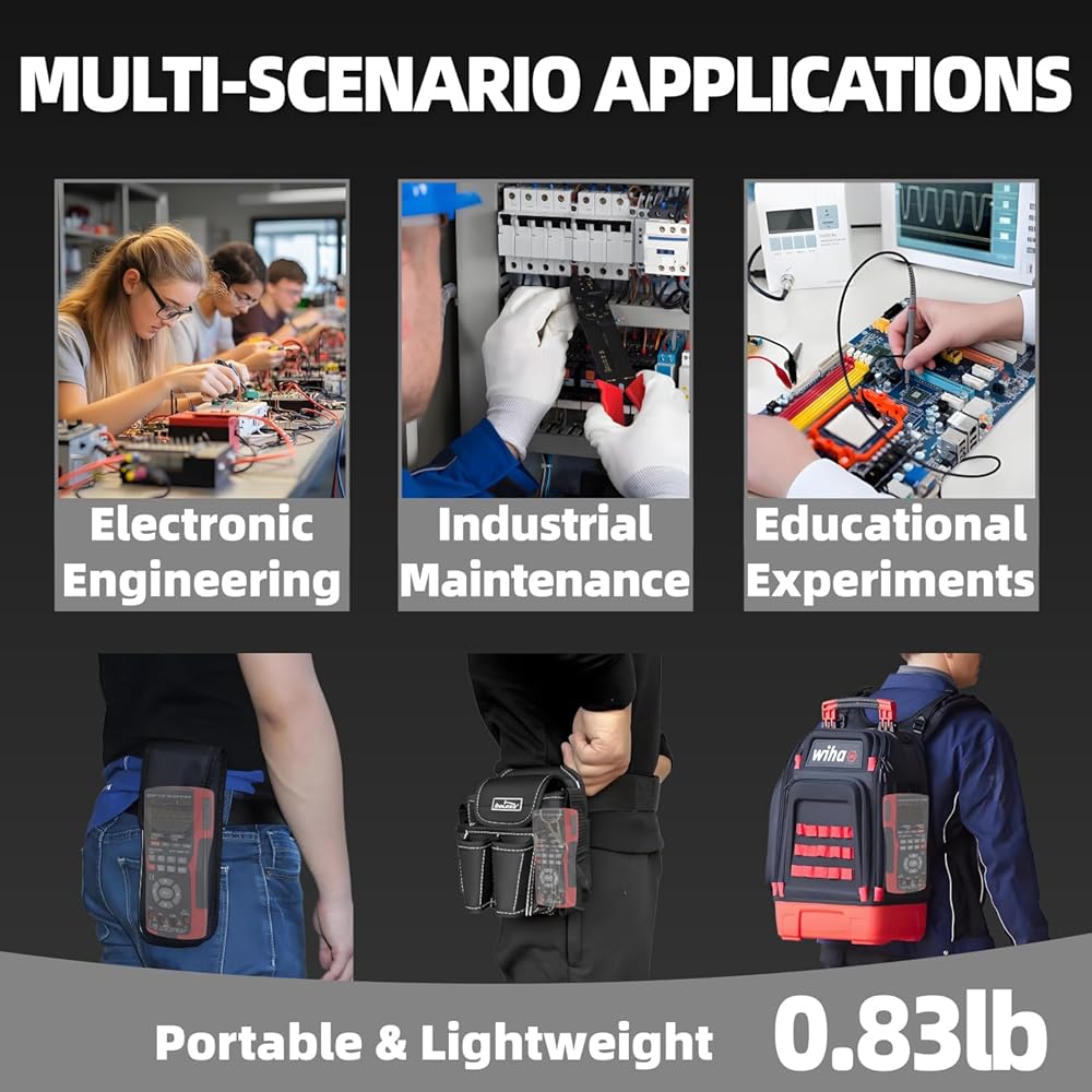 25000 Count MultiMeter: في وضع متعدد المقياس يتميز 25000 التهم ويمكنه قياس المقاومة ، والسعة ، والاستمرارية ، والثنائيات ، والتيار. يجعل تصميمه متعدد الوظائف أداة مثالية للقياسات الإلكترونية ، مما يوفر دقة عالية ومجموعة واسعة من التطبيقات.