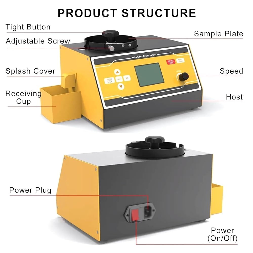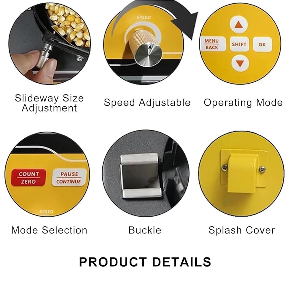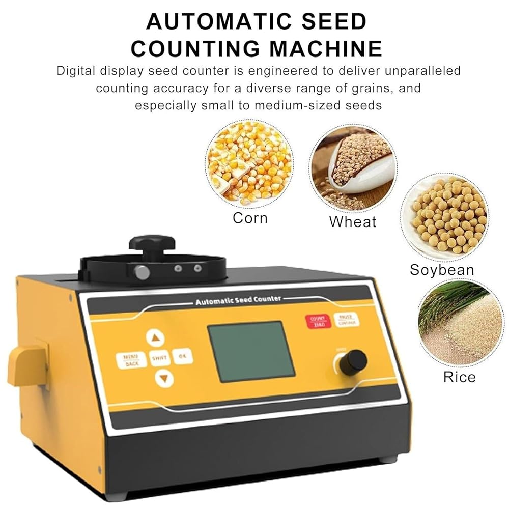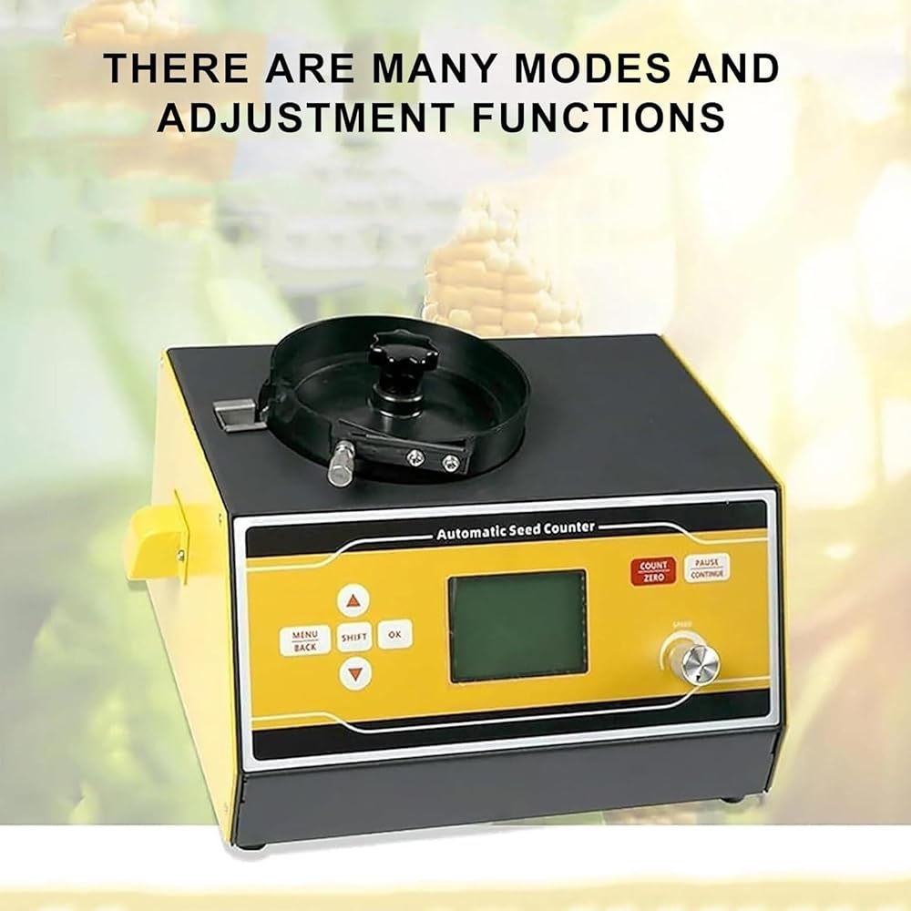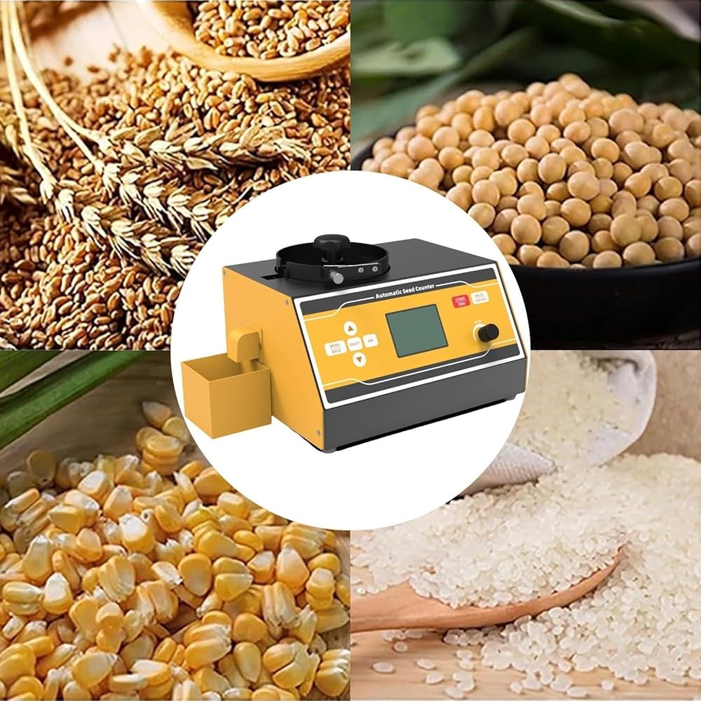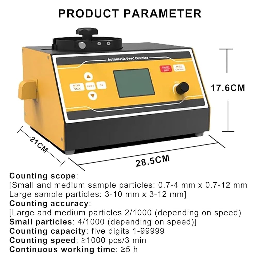 This advanced counting machine offers both free counting and batch counting modes with adjustable counting speed and high accuracy; it has different sensitivities for different sized particles, automatically slows down when approaching the set number, and automatically stops if no particles are detected within 60 seconds. The user-friendly interface includes an LCD screen for simple mode selection and clear display of counting time, level and number of particles; suitable for counting crops, seeds, feed, diamonds and other applications