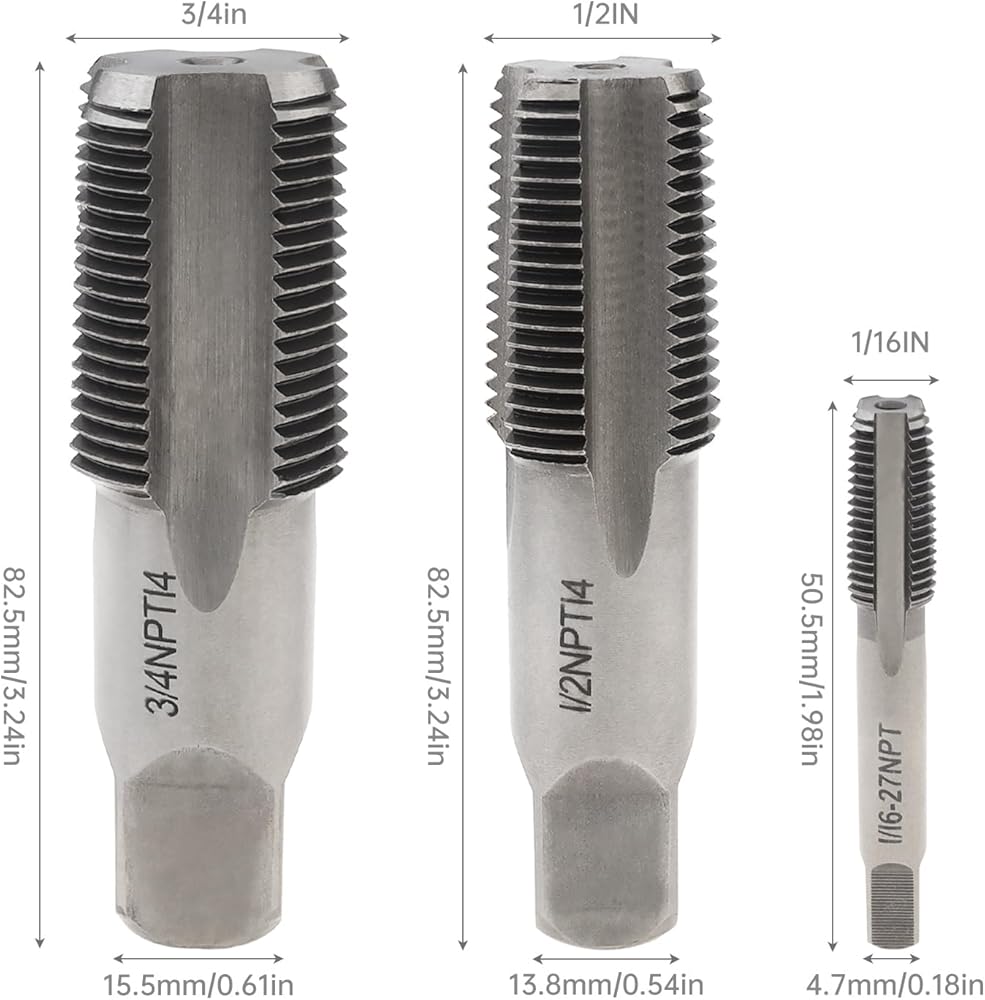 Material: Crafted from heat-treated carbon steel, these NPT tapered pipe thread tap exhibit durability, high strength, extreme hardness, and corrosion resistance, ensuring long-lasting performance in even the toughest applications