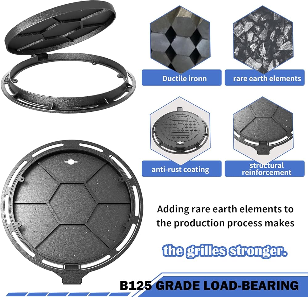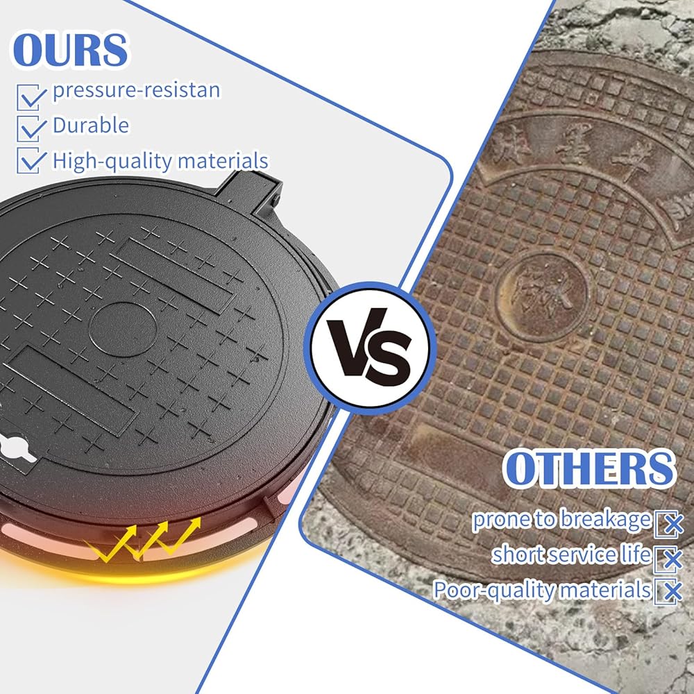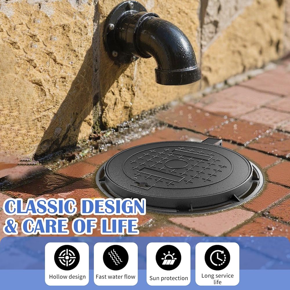 🌧 All-Weather Protection – No Rust, No Maintenance Rain, snow, mud, or sun—this sewer cover outdoor stays tough. A corrosion-resistant coating protects against rust and decay so you won't have to worry about maintenance or replacement.