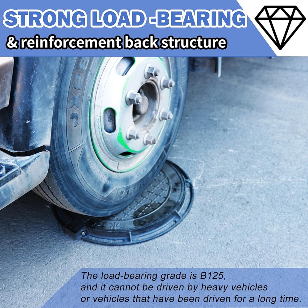 🧍♂ Safe & Slip-Resistant – Designed for Real-World Use The non-slip surface adds traction in wet or icy conditions, helping prevent slips and falls. Plus, the metal manhole cover built-in lifting slot makes opening and closing fast and easy using a standard hook or flathead tool.