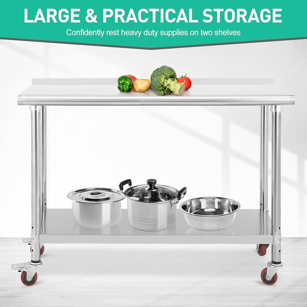 Multi-Purpose Utility: Use this prep table in garages, bars, schools, or hospitals—it's a versatile stainless steel tables solution for any professional or home setting.