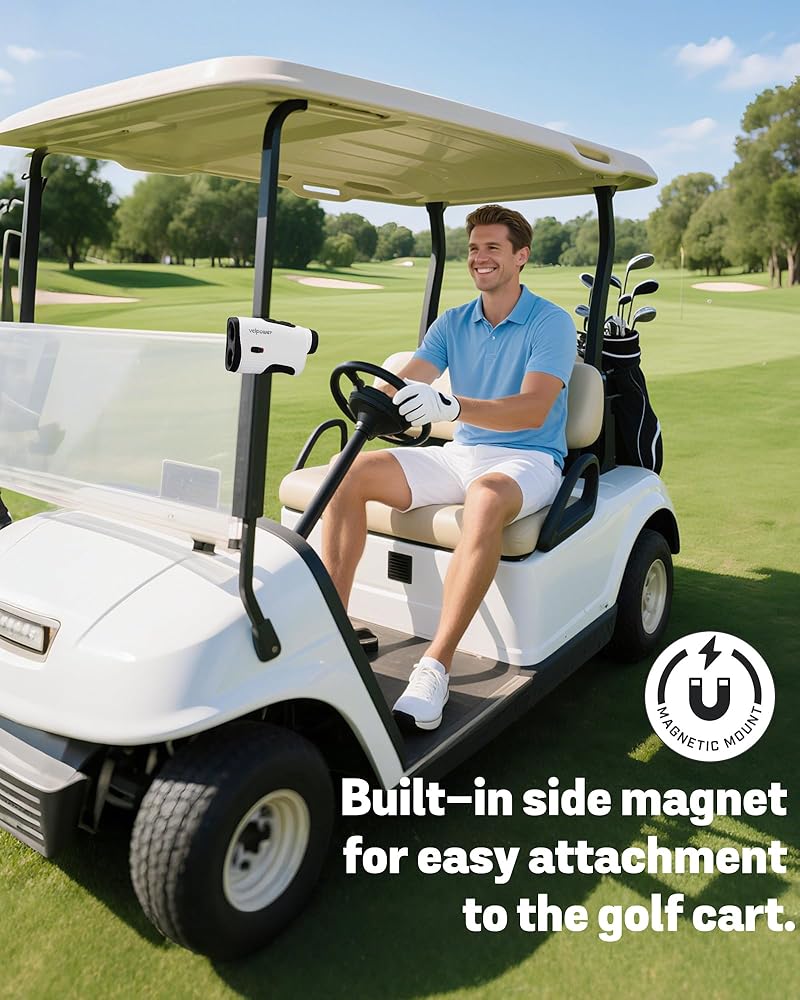 Upgraded Golf Rangefinder with Slope – Measure up to 1200 yards with ±0.5-yard accuracy. Features slope switch, 7X magnification, clear LCD display, and a built-in magnetic strip for carts or clubs. Perfect for golf, hunting, and archery.