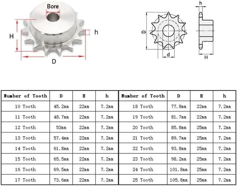 Number of teeth: 10 Tooth to 25 Tooth