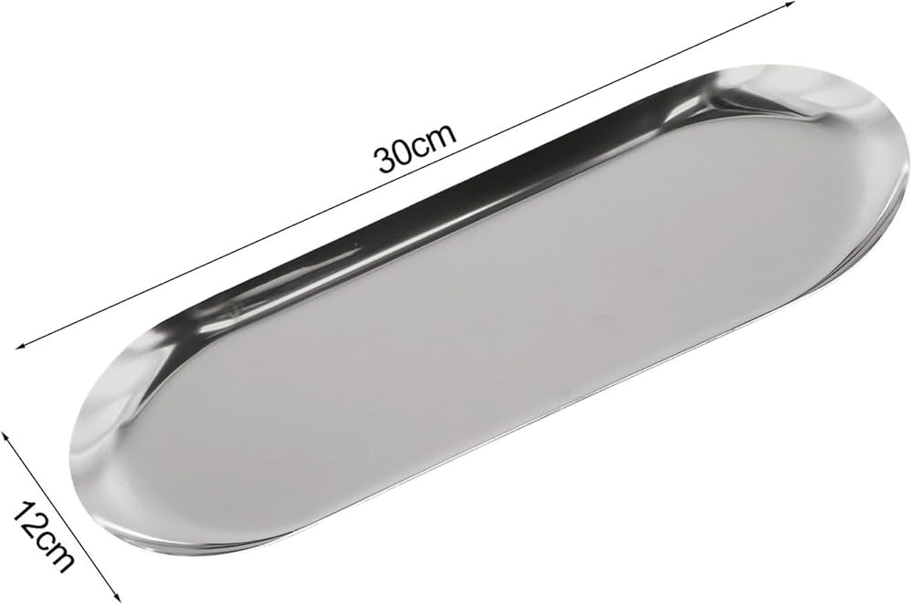 محلول تخزين صينية بيضاوي من الفولاذ المقاوم للصدأ للشاي والفواكه ومستحضرات التجميل (30 سم)