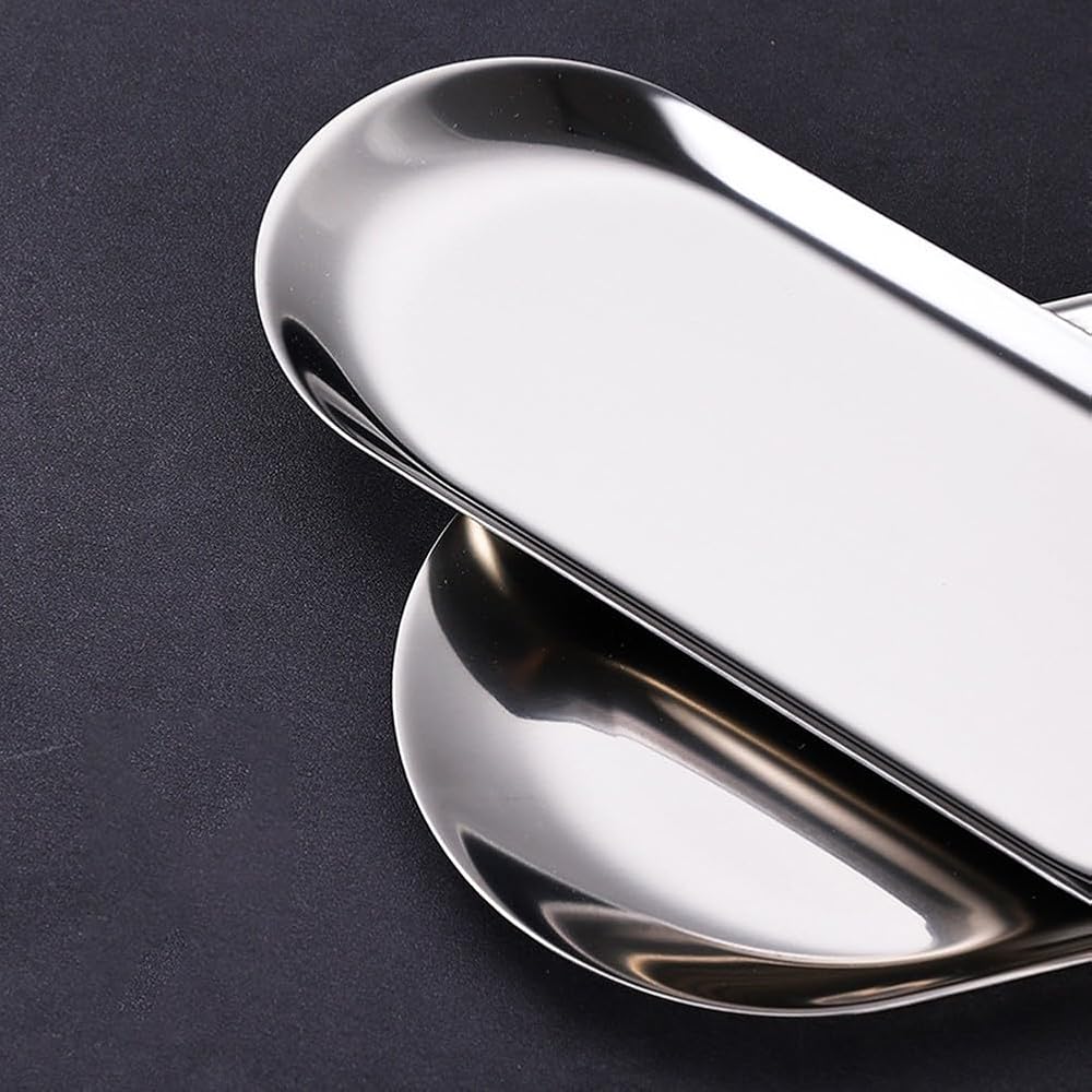 • 【Enhances Home Aesthetics】Whether placed on the bathroom counter, nightstand, kitchen sink, dining table, or coffee table, these lovely stainless steel trays add a touch of elegance to your home decor.