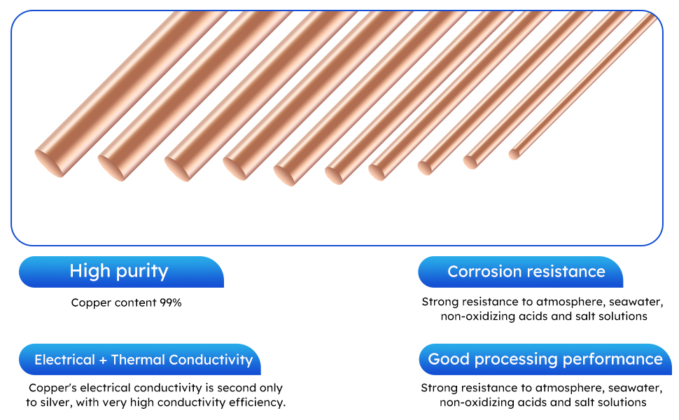 99.9 ٪ نقاء النحاس】 محتوى النحاس يصل إلى 99.9 ٪. قضبان مستديرة النحاس لا تحتوي على طبقات ، لا توجد ثقوب ، لا ثقوب هواء. قضبان النحاس لها سطح ناعم ولامع ، مثالي للحرف المعدنية DIY.